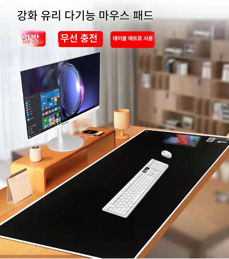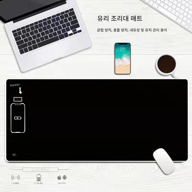 휴대폰 무선 충전 가열 마우스 패드 대형 테이블 태양광 유리 마우스 패드 데스크 패드 사무실 마우스 패드 도매
