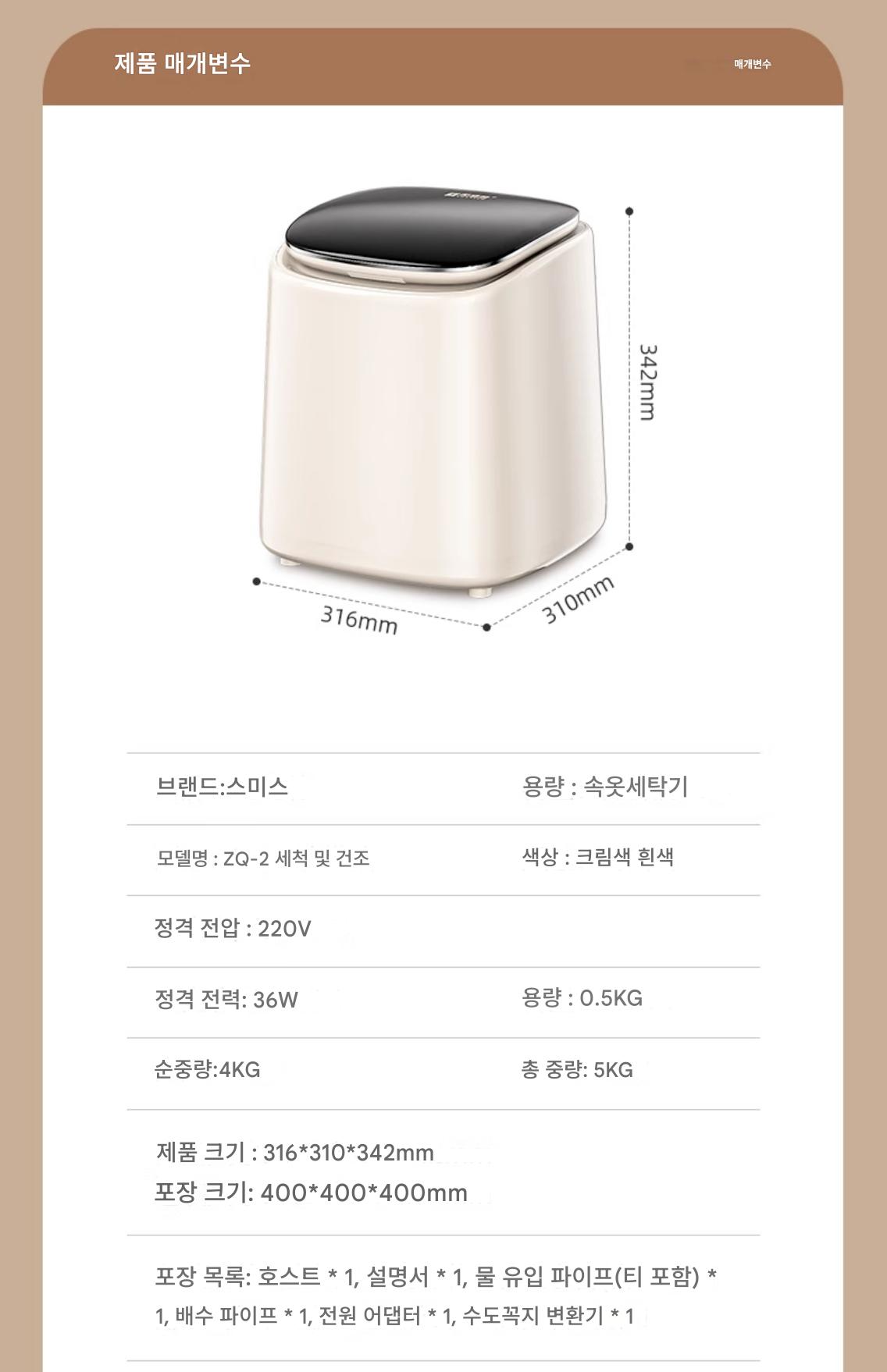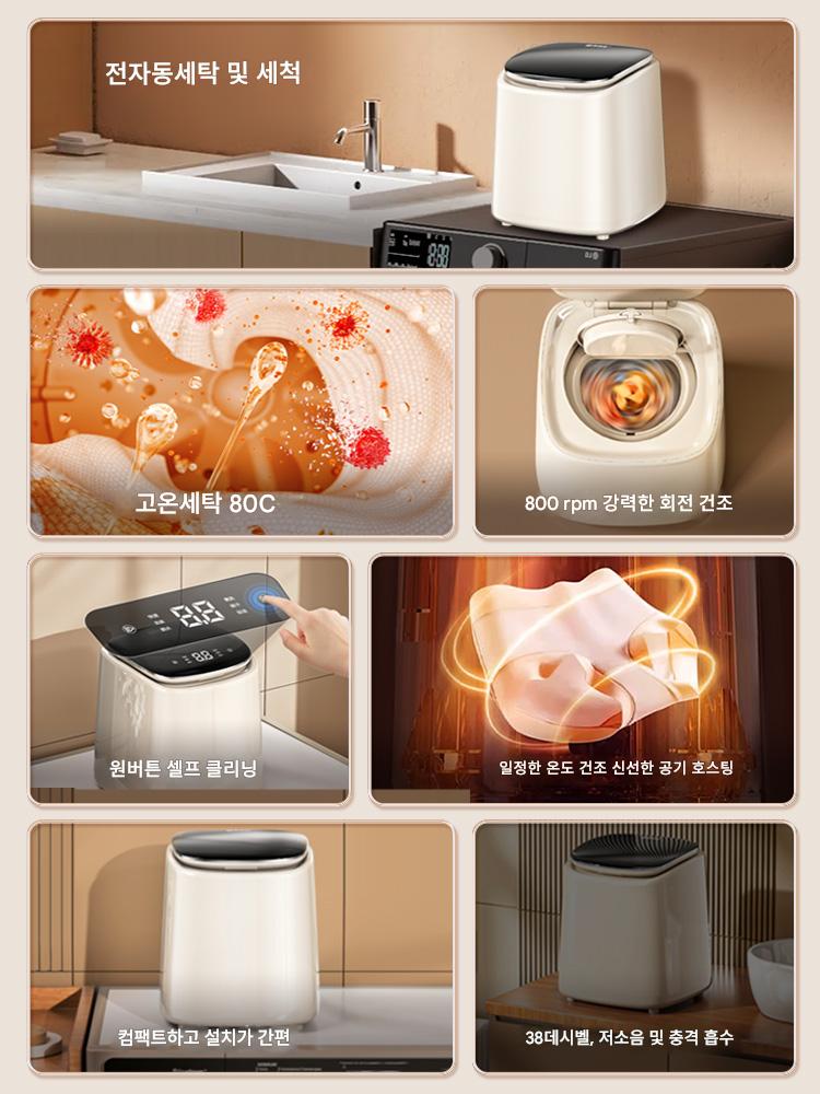0.5KG 전자동 미니 세탁기 속옷, 양말 세탁, 건조, 건조까지 한대의 소형 건조기로