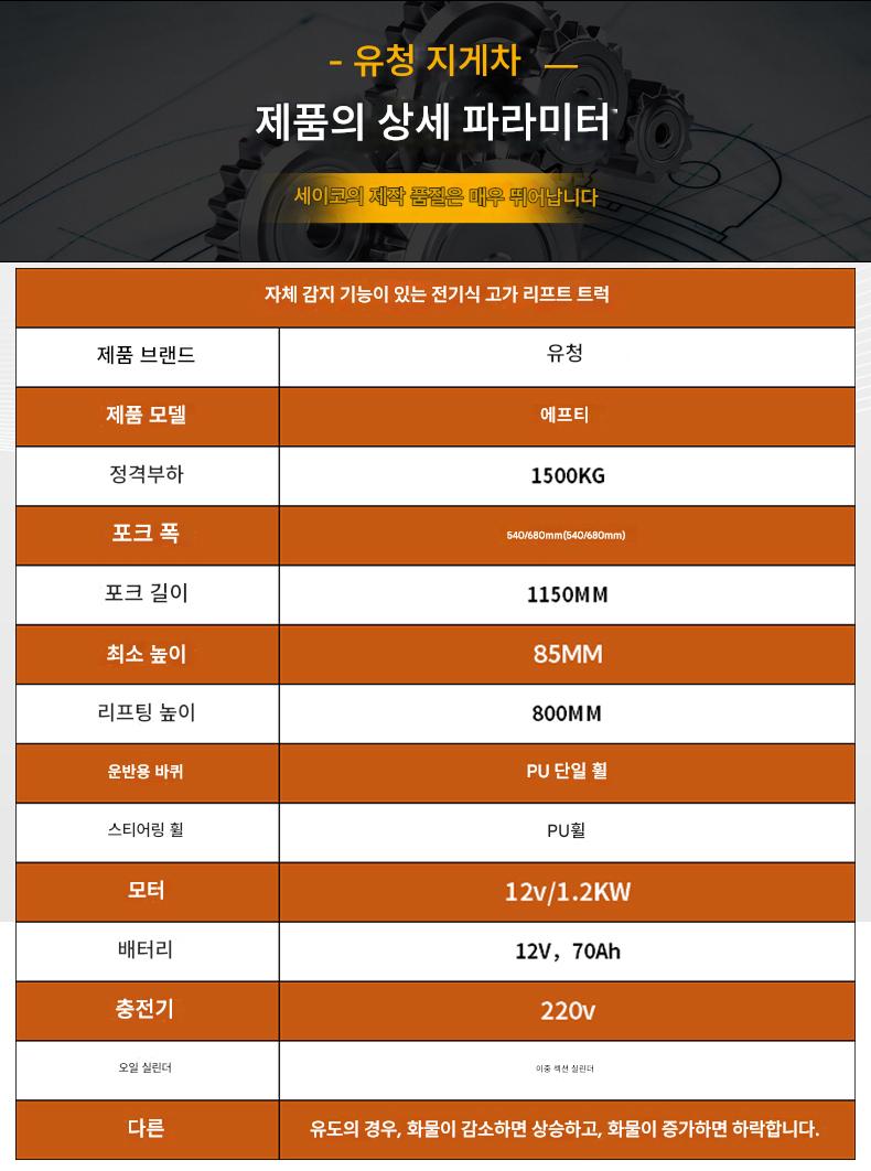 1.5톤 수동 하이리프트 트럭 리프팅 가위 포크리프트 0.8m 하이리프트 유압 리프트 포크리프트