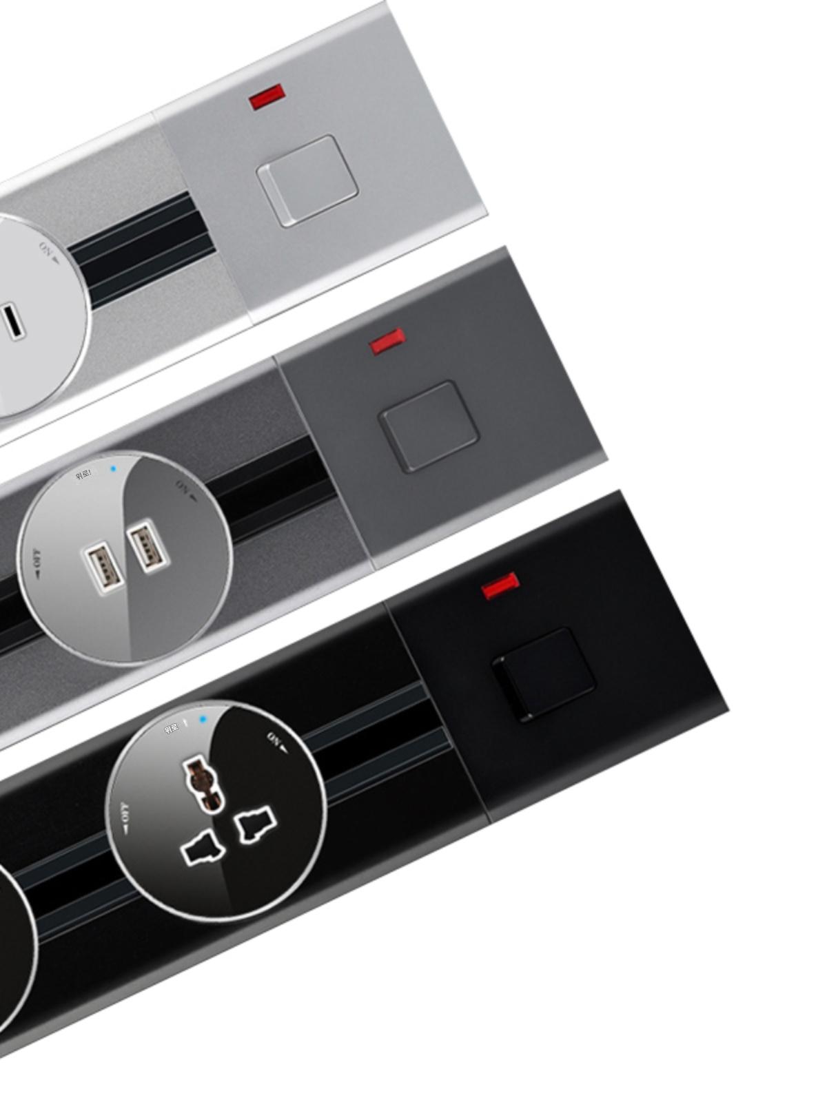 110v 대만 가정용 표면 장착 트랙 회색 주방 거실 전원 레일 미국 소켓 배선 보드 어댑터
