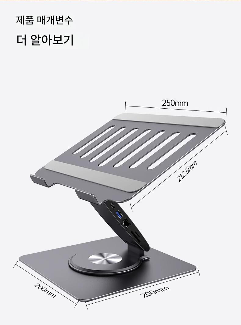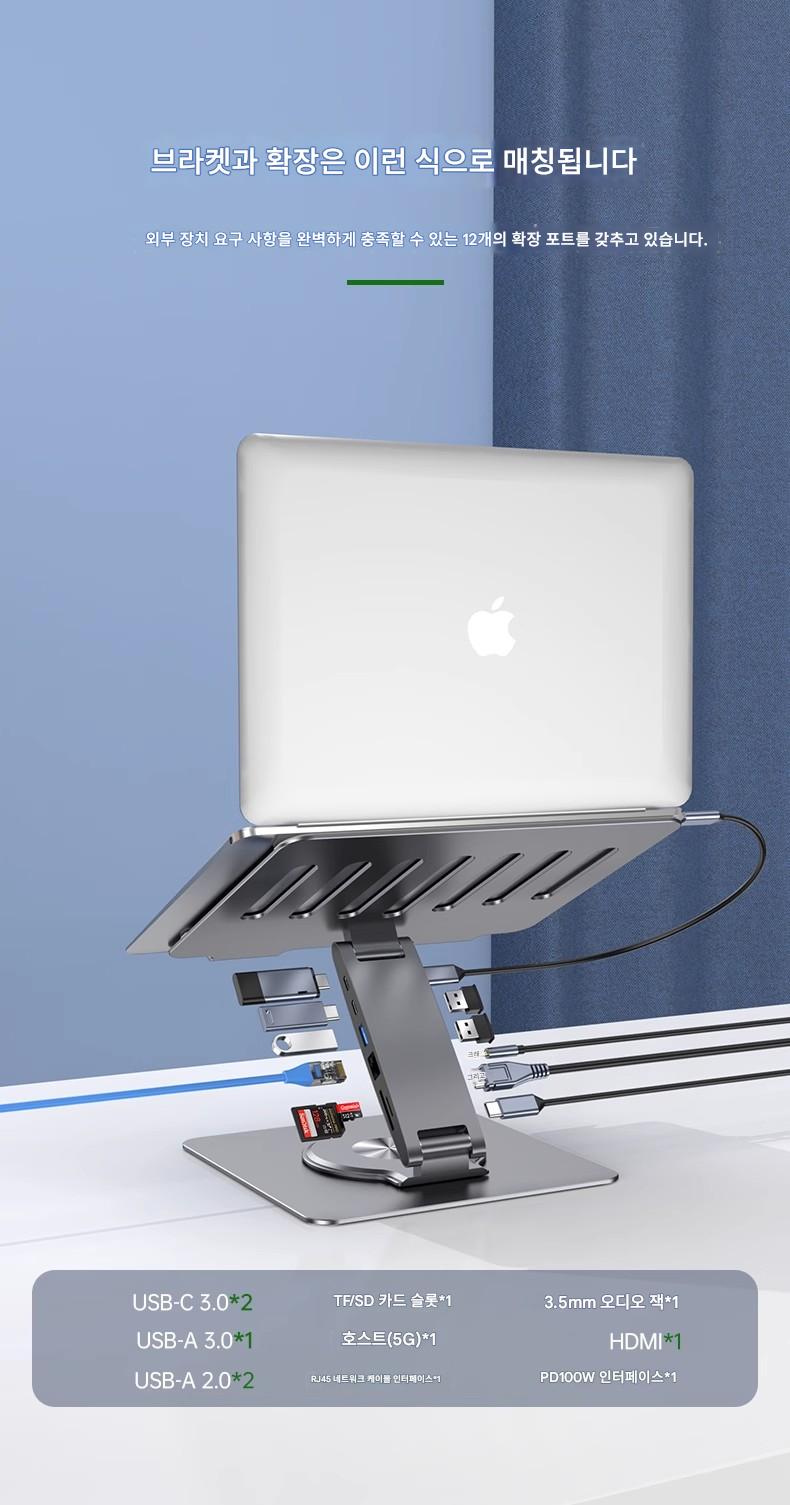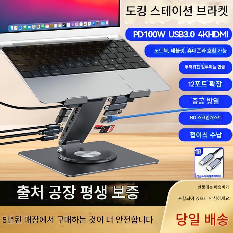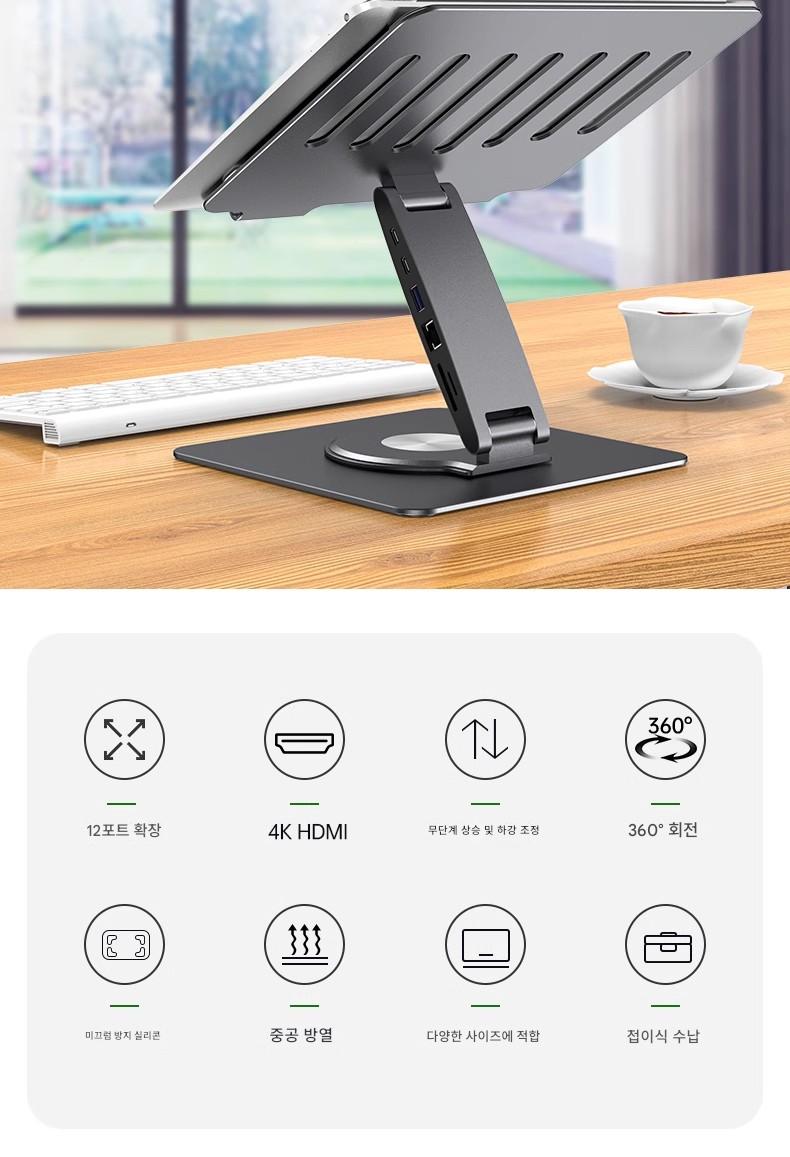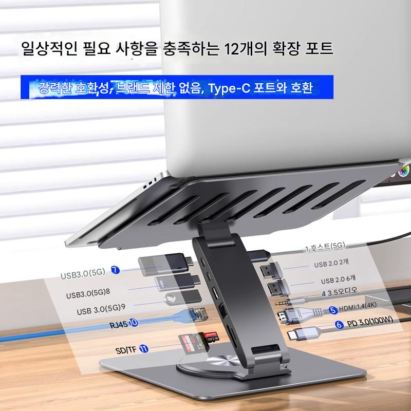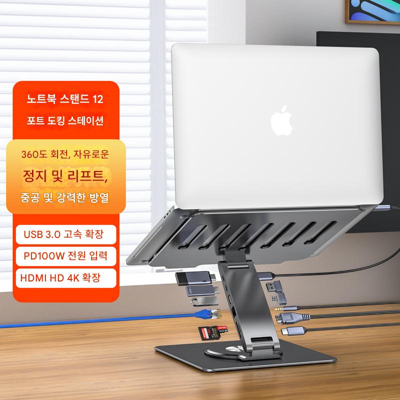 12포트 노트북 태블릿 확장 도크 데스크탑 Type-c 알루미늄 합금 브라켓 회전 접이식 방열 증가