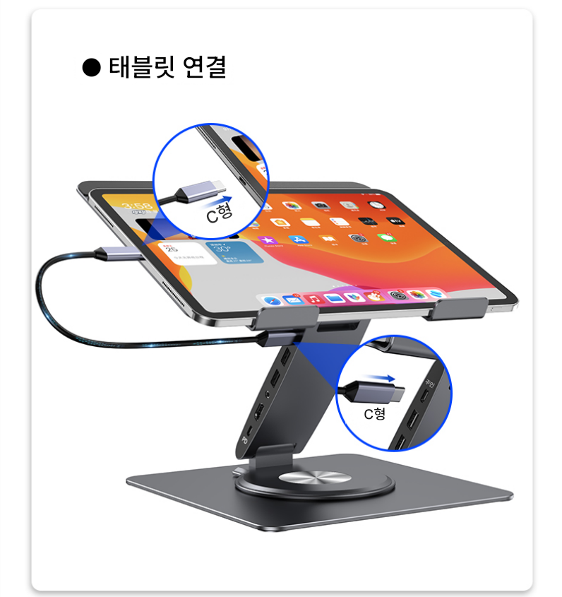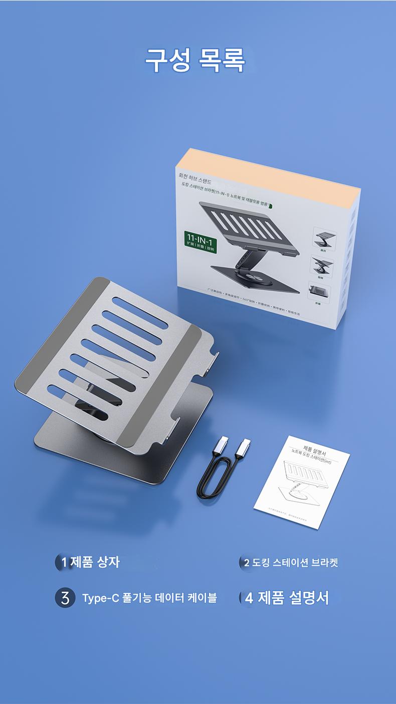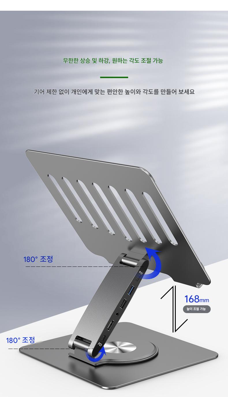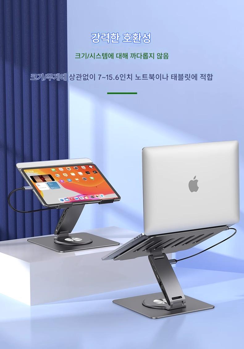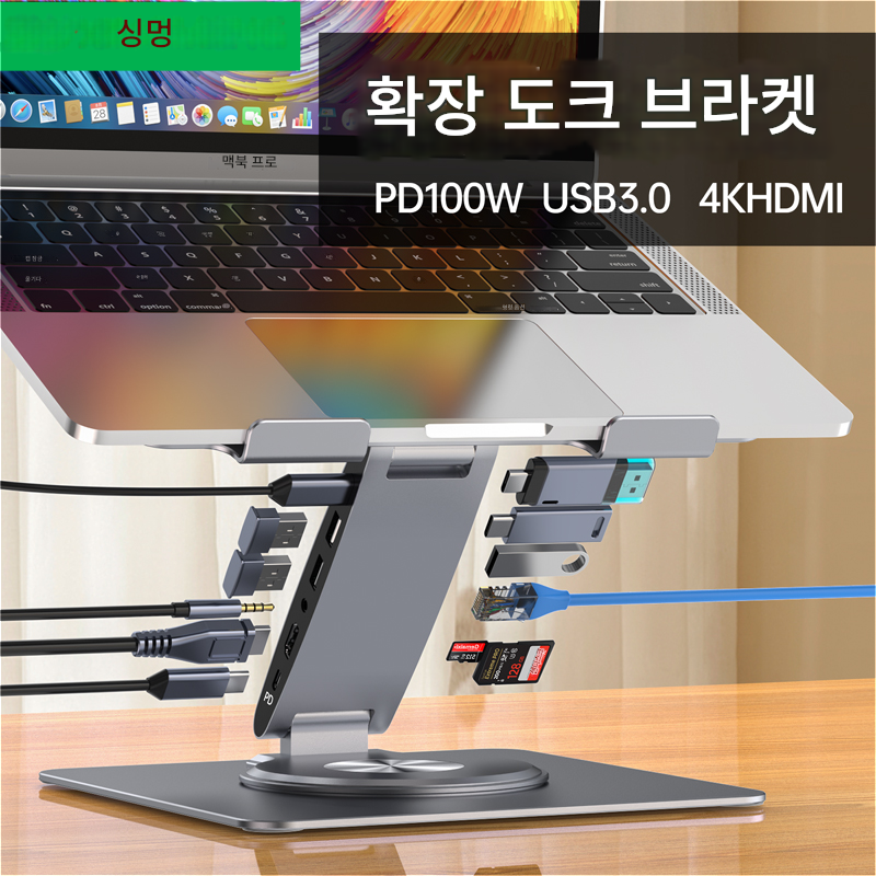 12포트 노트북 태블릿 확장 도크 데스크탑 Type-c 알루미늄 합금 브라켓 회전 접이식 방열 증가