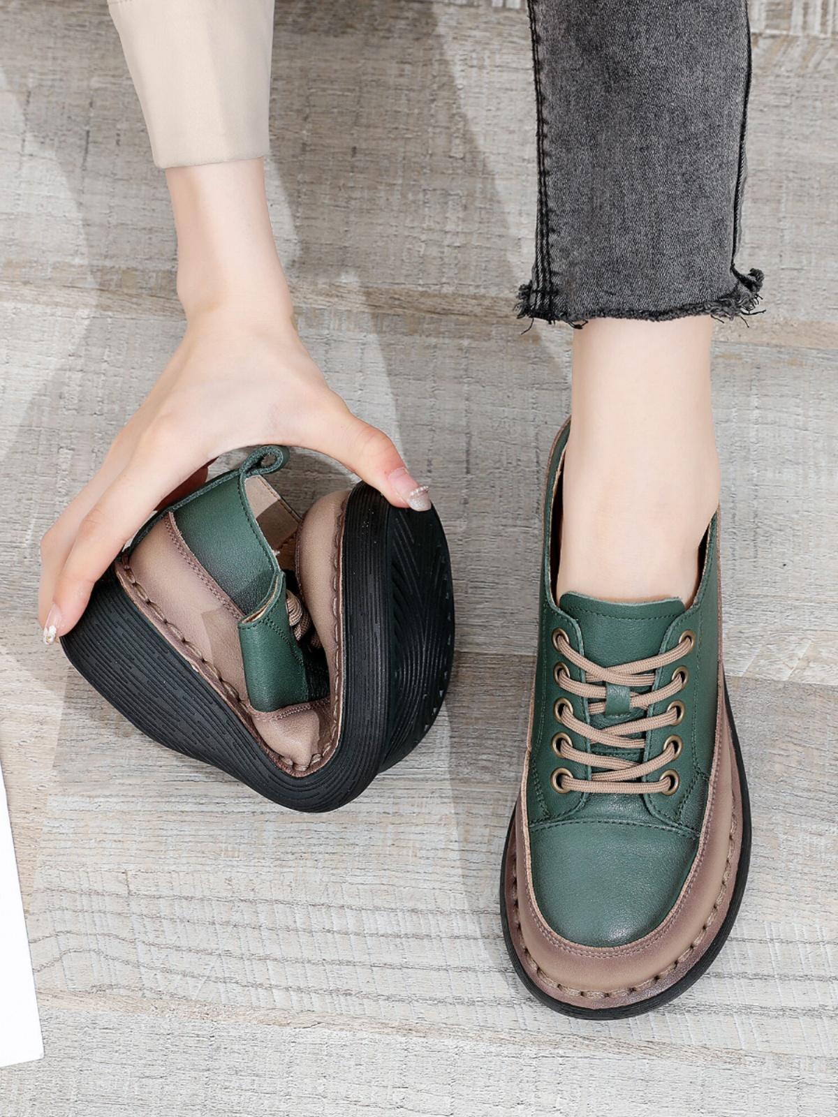 152603 상단 레이어 소가죽 순수 핸드메이드 고무 미끄럼 방지 부드러운 바닥 부드러운 표면 둥근 머리 깊은 입구 레이스 없음 레트로 캐주얼 신발