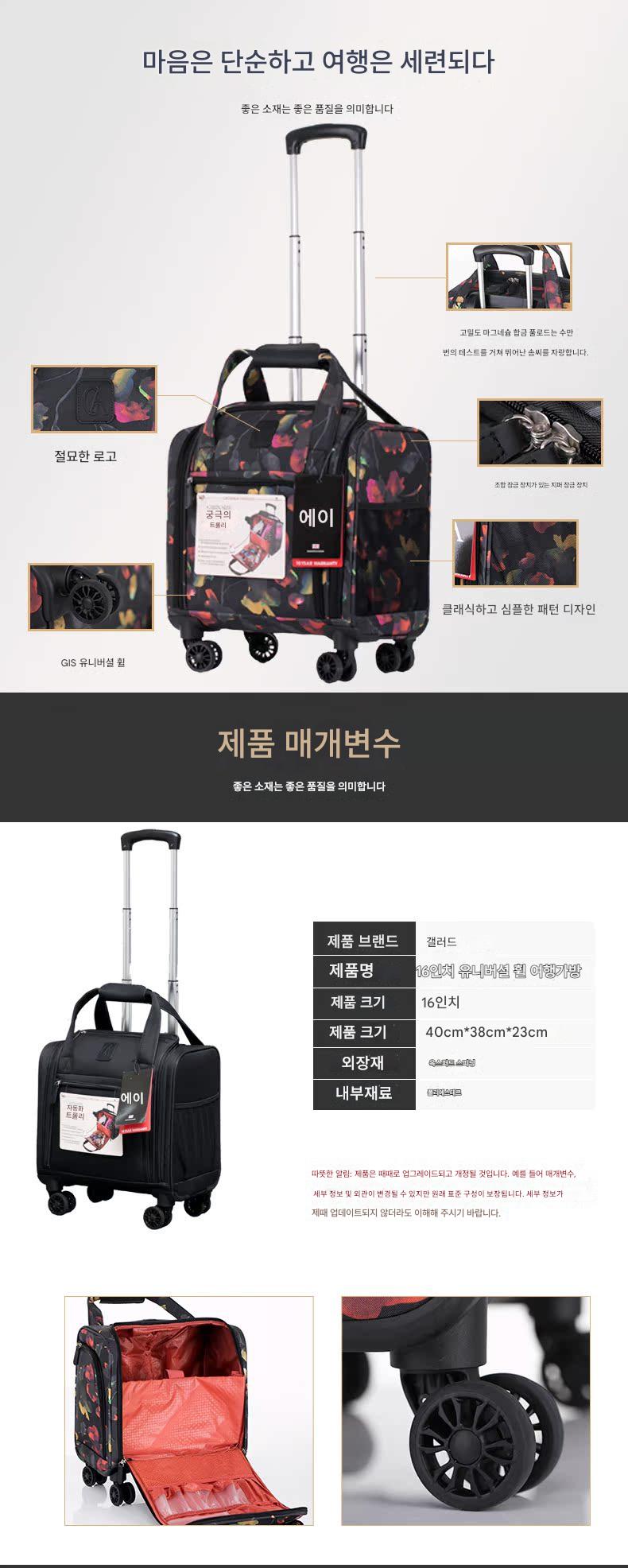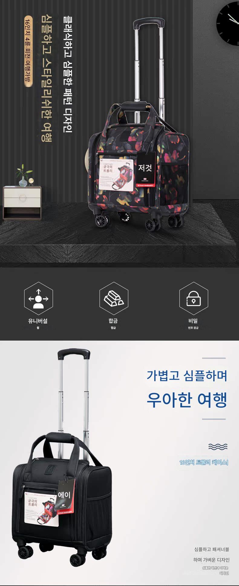 16인치 경량 휴대용 수하물 소형 여성 캐빈 케이스 라이트 사운드 유니버셜 휠 트롤리 케이스 무료 체크인 화장품 가방