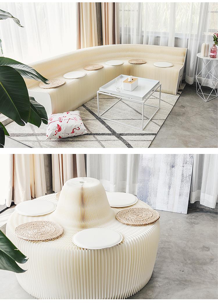 18페이퍼 화이트 6인용 아코디언 소파 스트레치 변형 소파 종이 가구 다인용 의자 4-5미터