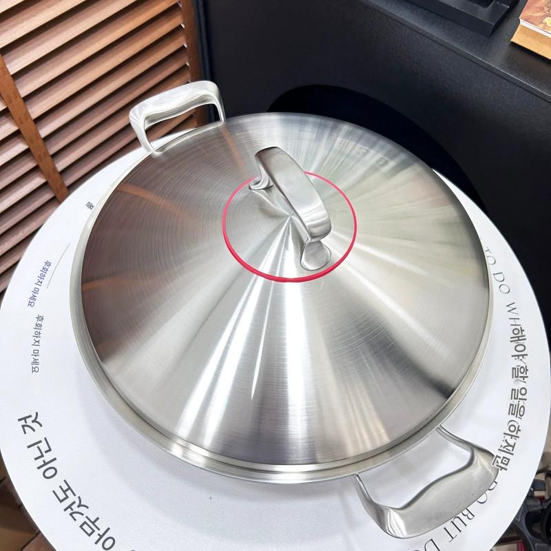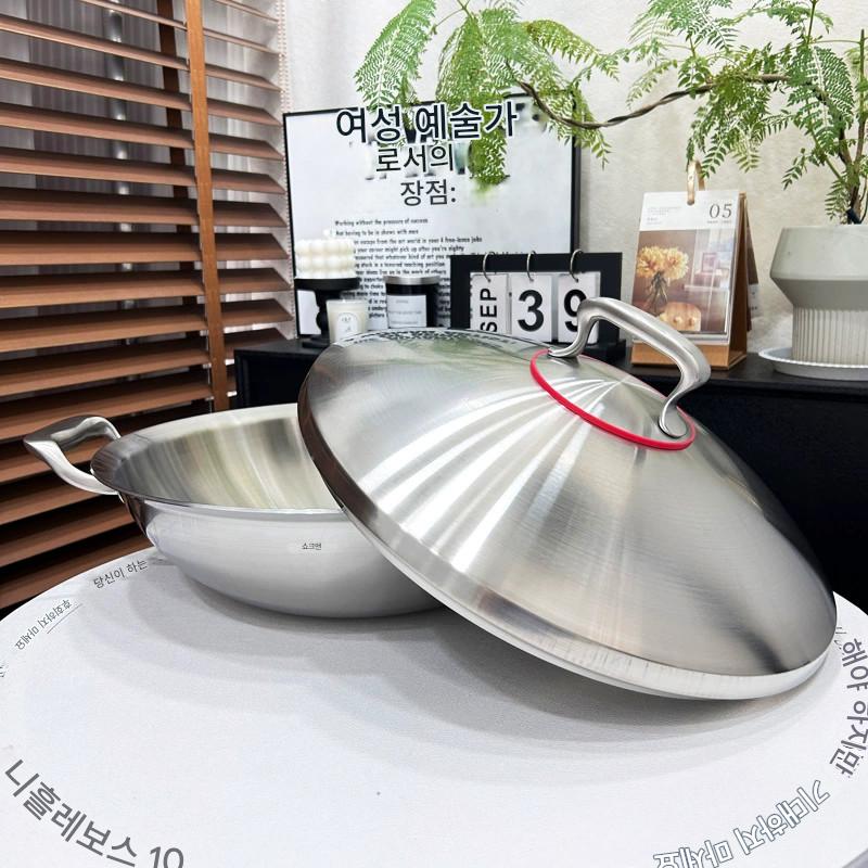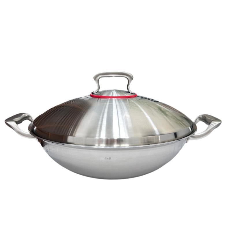 18/10 스테인리스 스틸 프라이팬 가정용 대형 두꺼운 이중 귀 코팅되지 않은 노스틱 둥근 바닥 프라이팬 대형 찜기