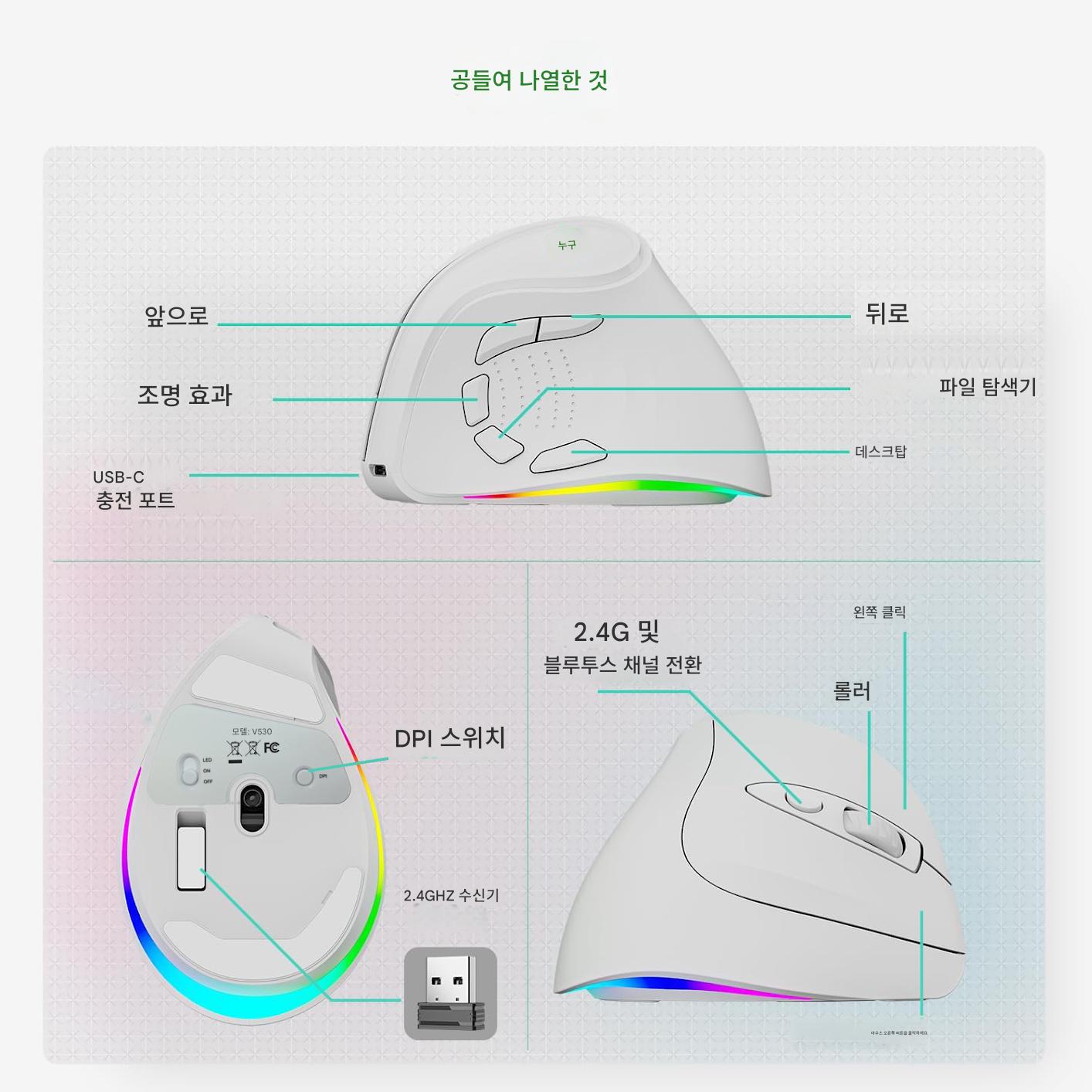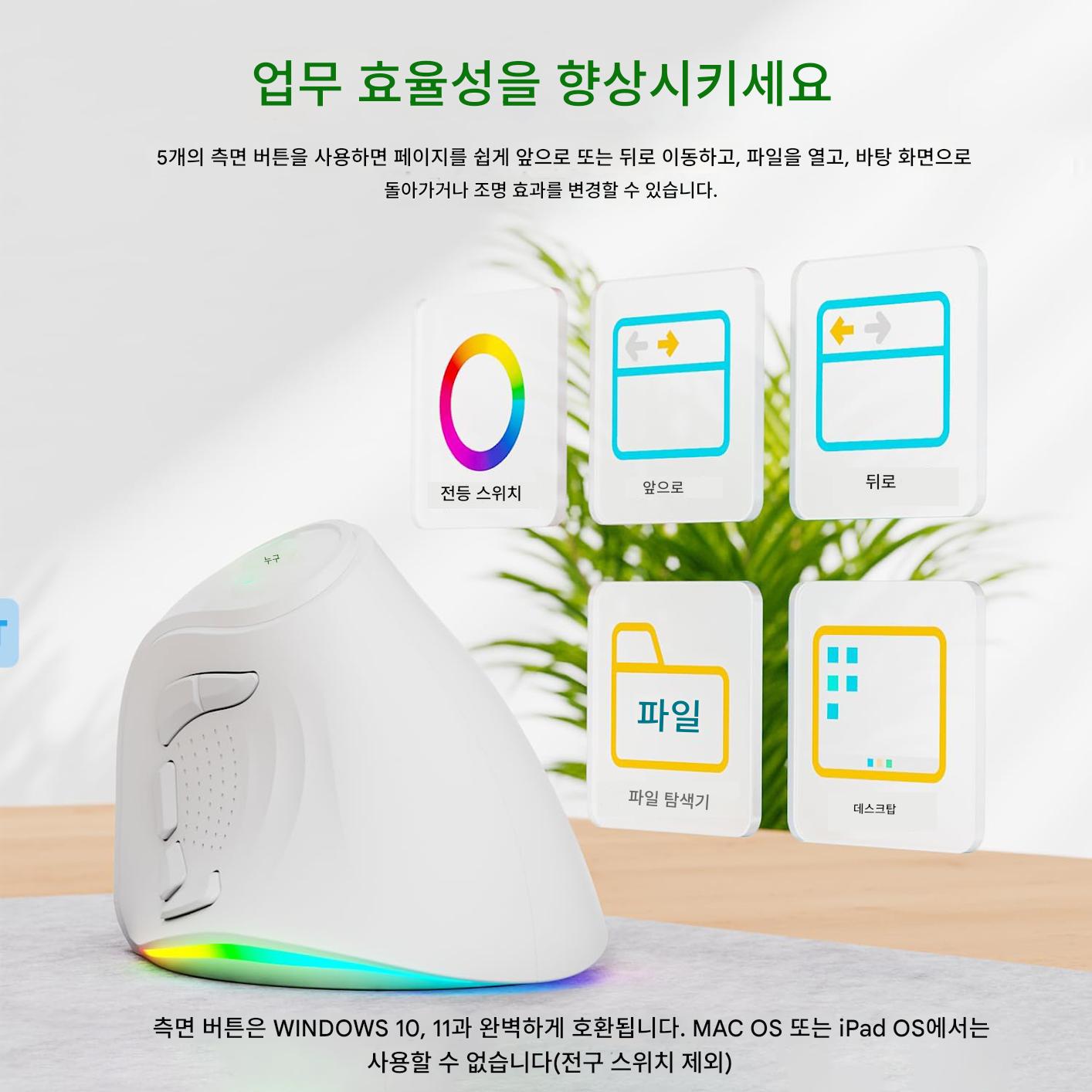 2.4G 블루투스 듀얼 모드 인체공학적 수직 마우스 4000DPI 9키 RGB 백라이트 충전식 무소음 마우스