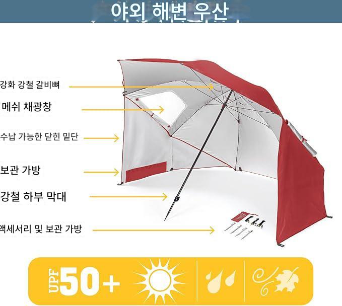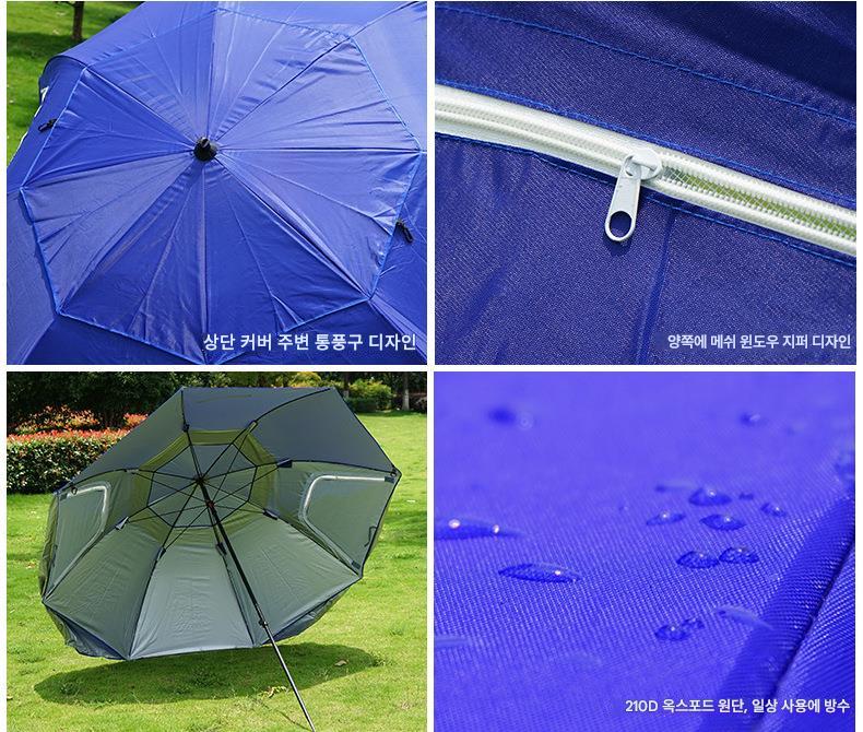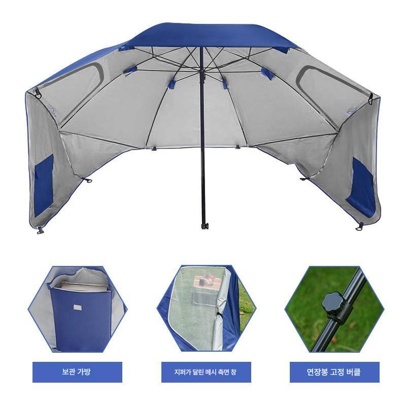 2.4m 야외 캠핑 파라솔 메시 창 휴대용 듀얼 퍼포즈 비치 텐트 우산