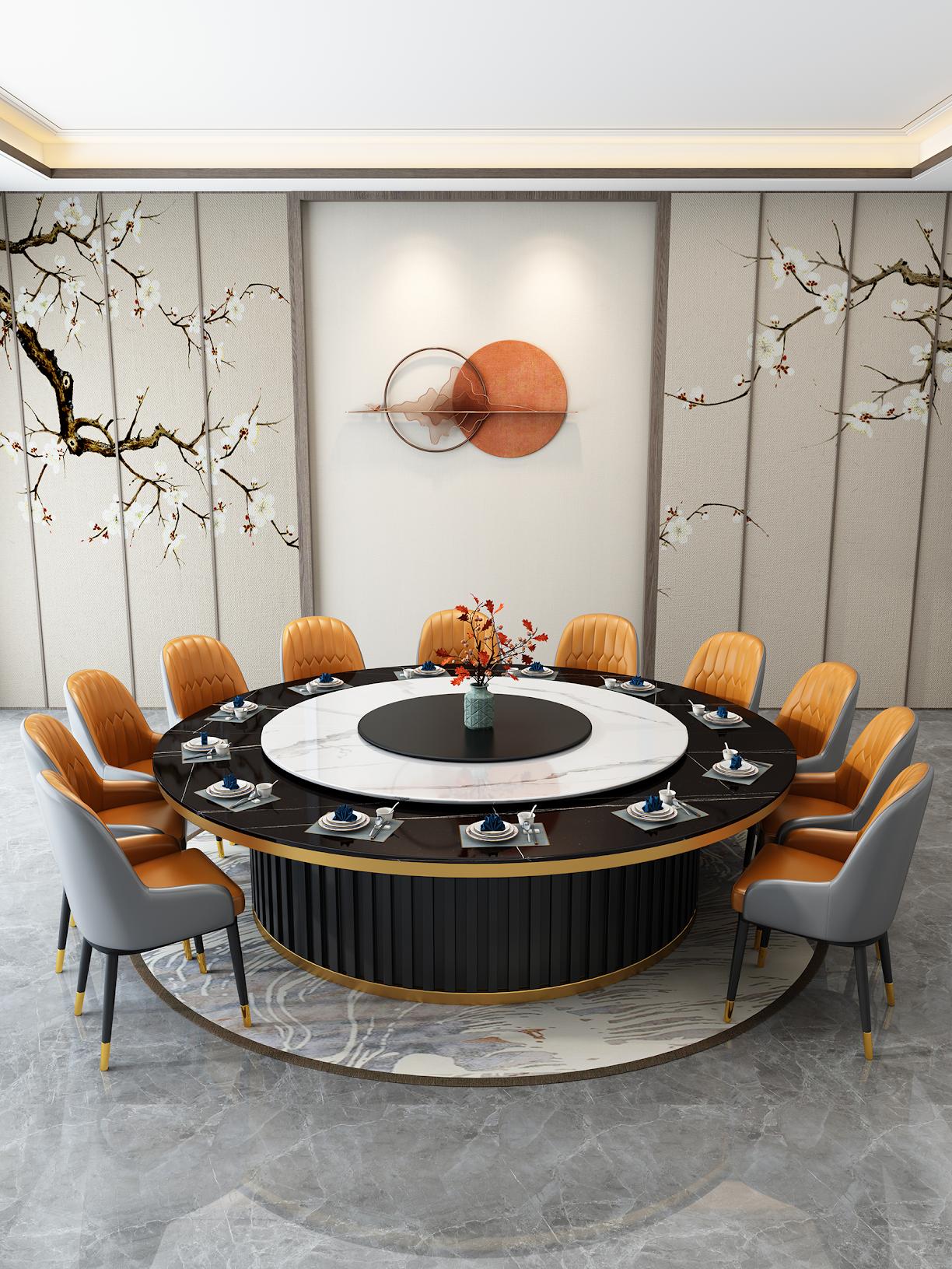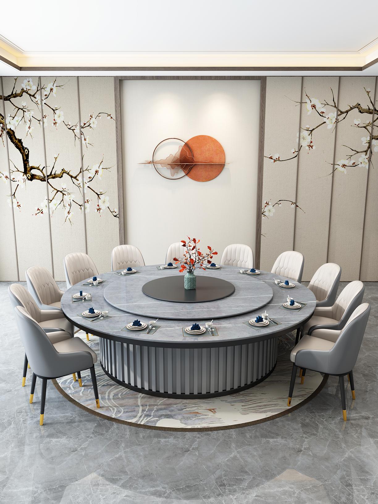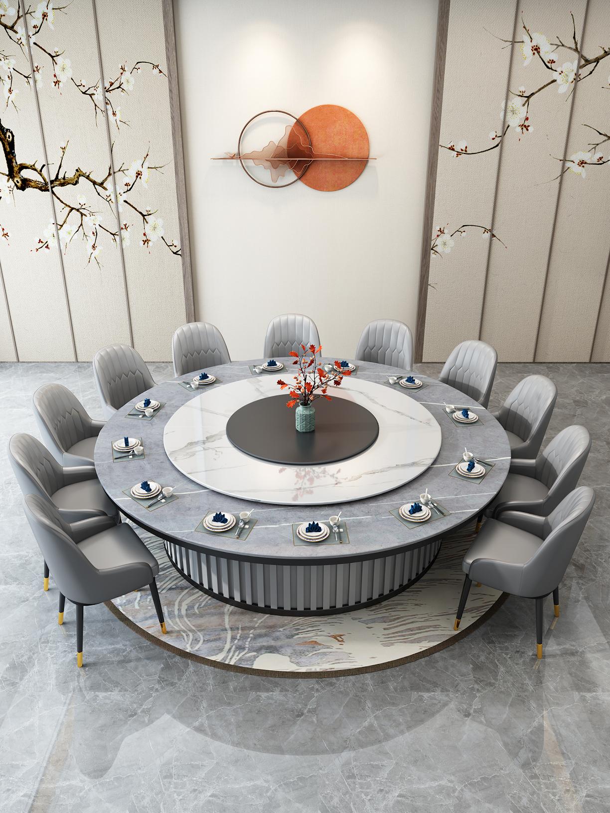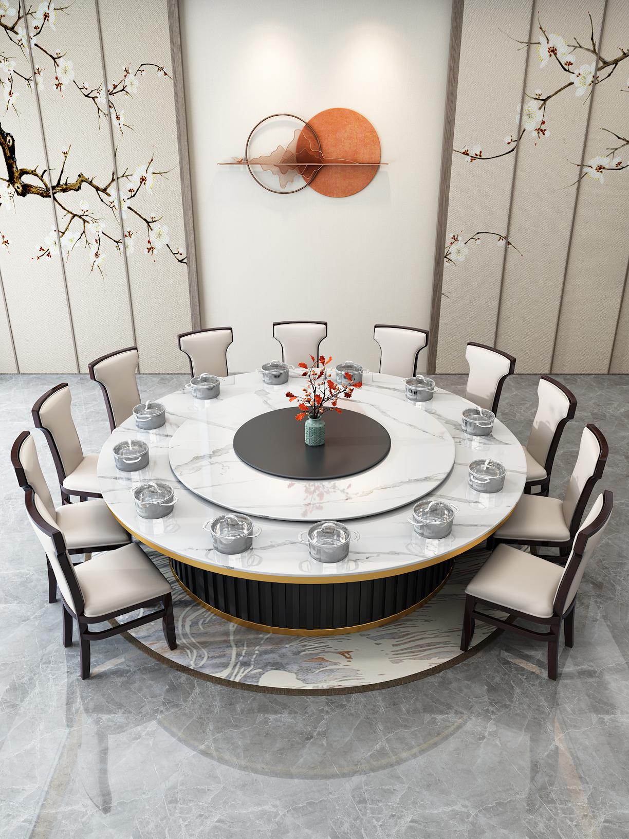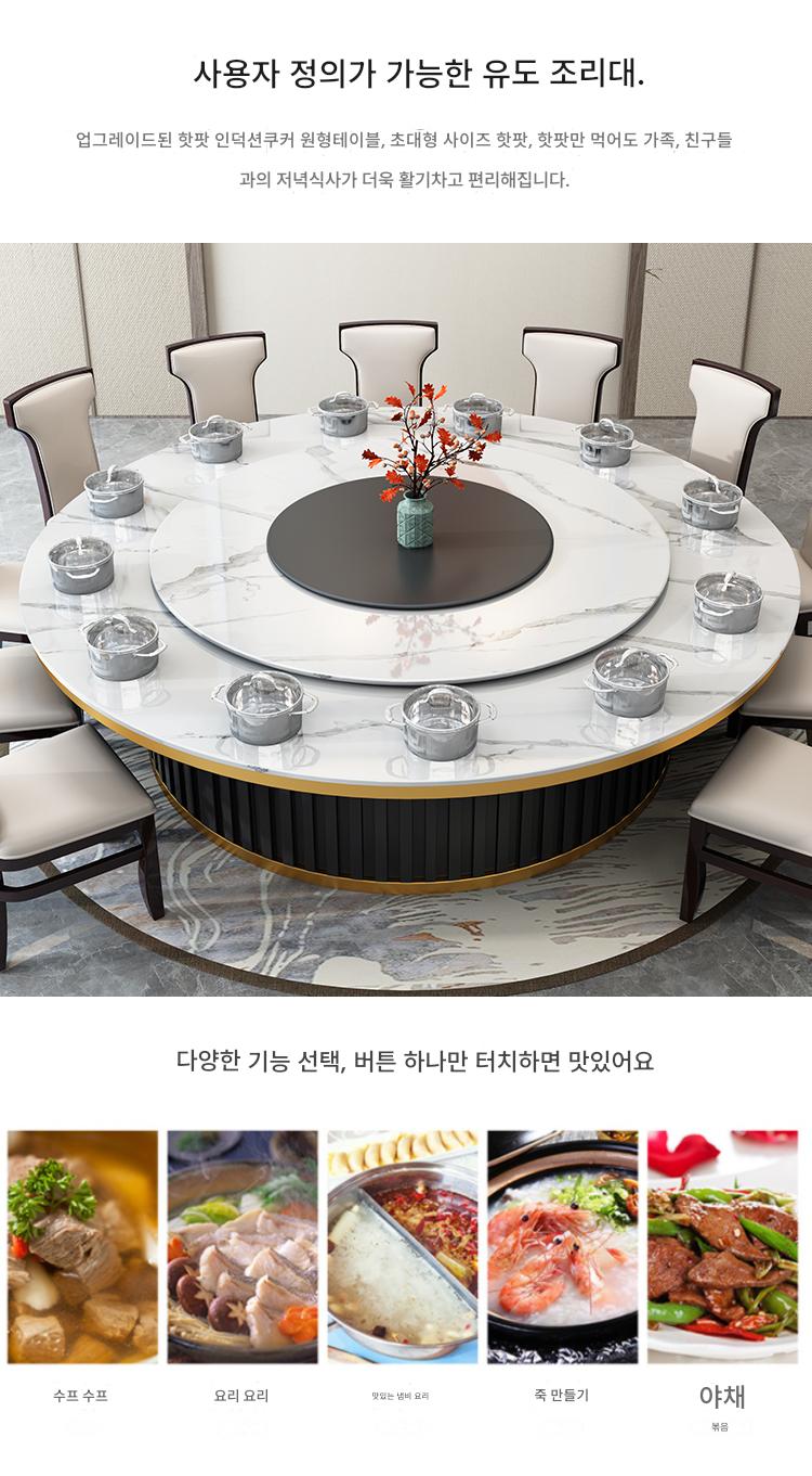 20인용 중간 턴테이블이 있는 대형 원형 테이블 호텔 전기식탁 레스토랑 인덕션 쿠커가 있는 핫팟 테이블 빌라 테이블