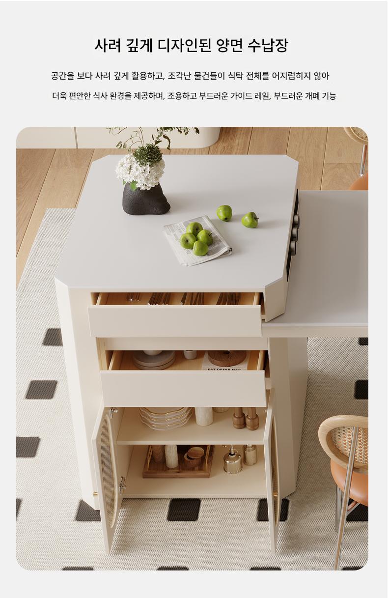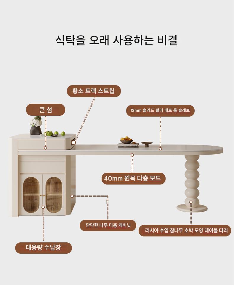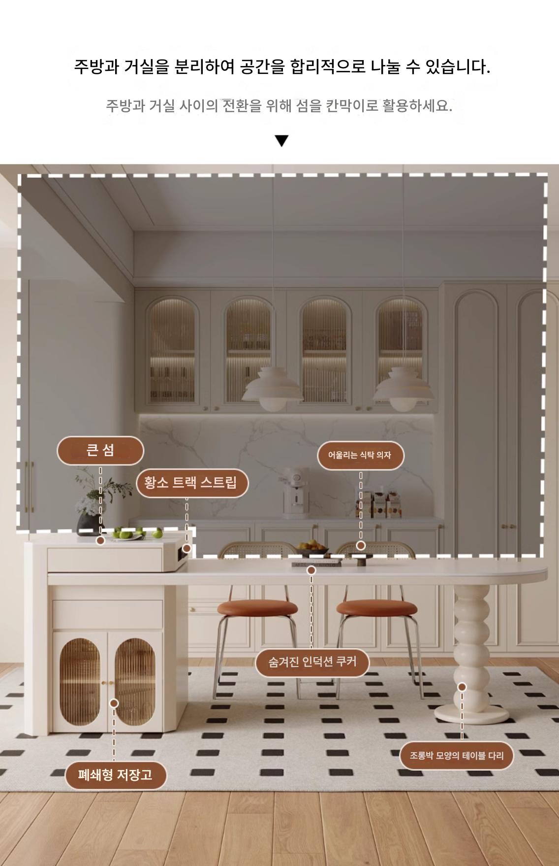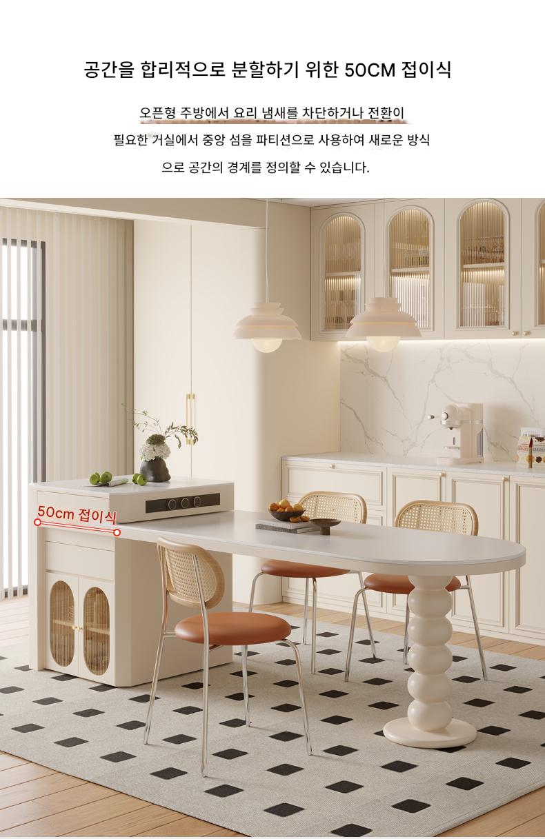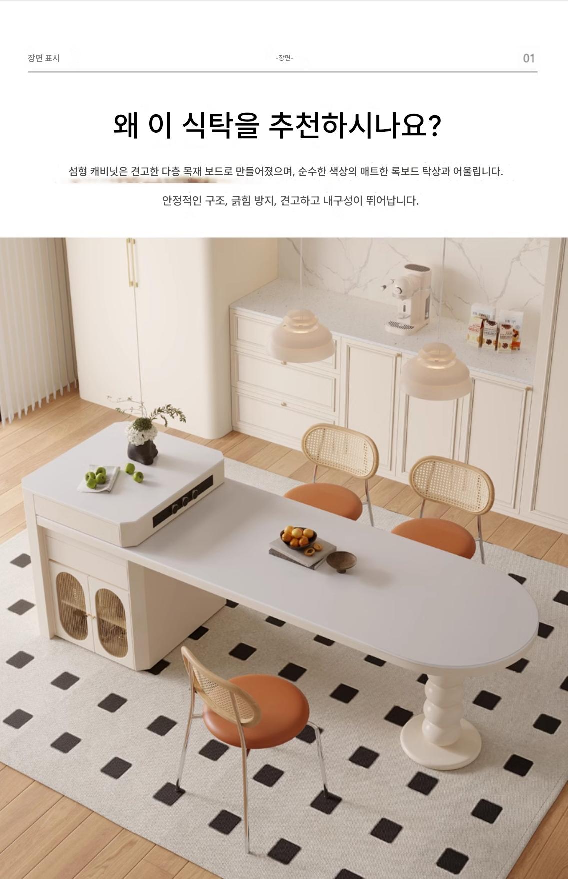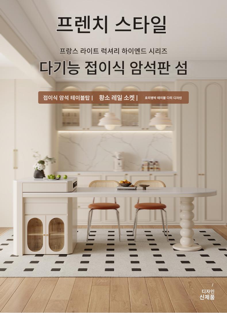 2023년 신형 가이드 테이블 플러스 식탁 통합형 가정용 접이식 견고한 나무 프랑스 크림 스타일 주방 플러시 센터 아일랜드