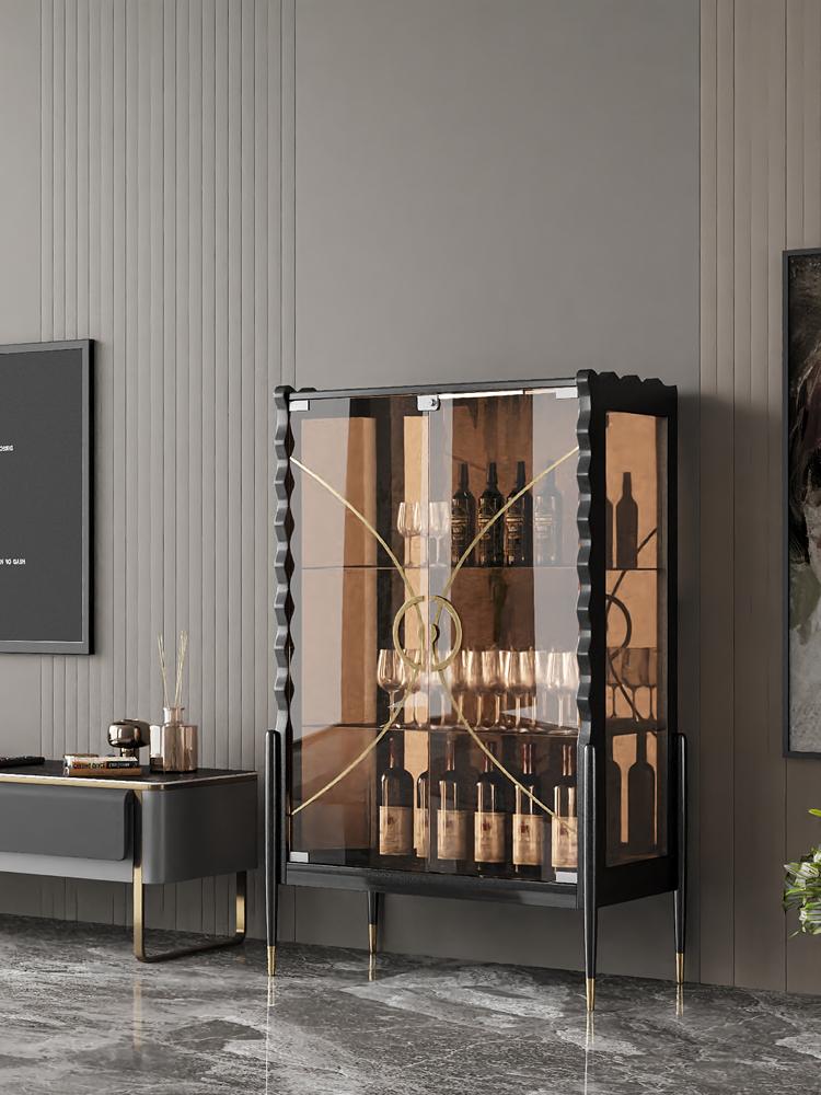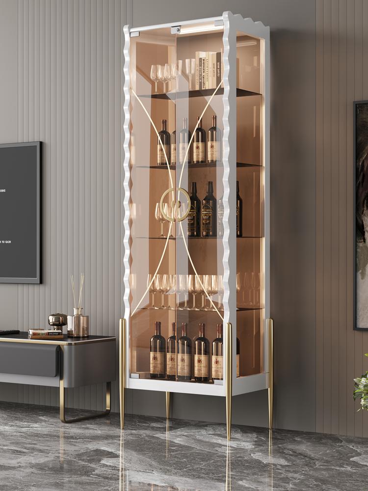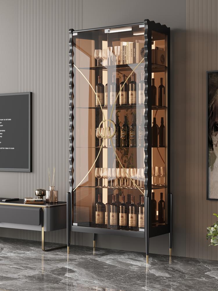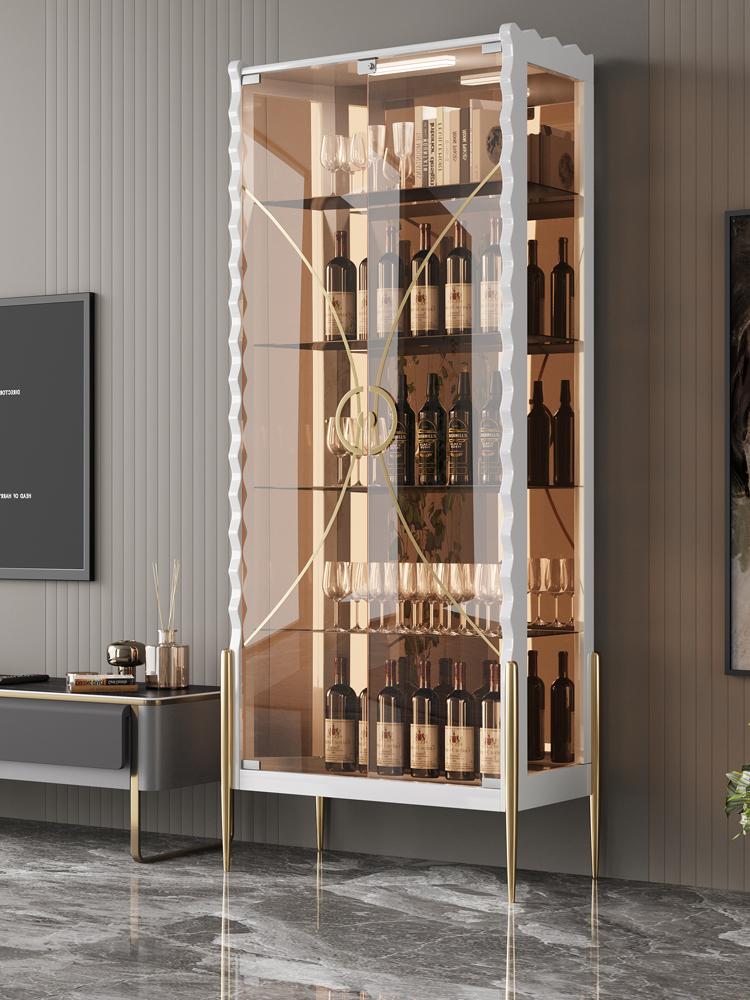 2024년 새 소형 유리문 와인 캐비닛 가정용 벽면 거실 조명 고급 식사 옆 고급 핸드메이드 레고 디스플레이 캐비닛