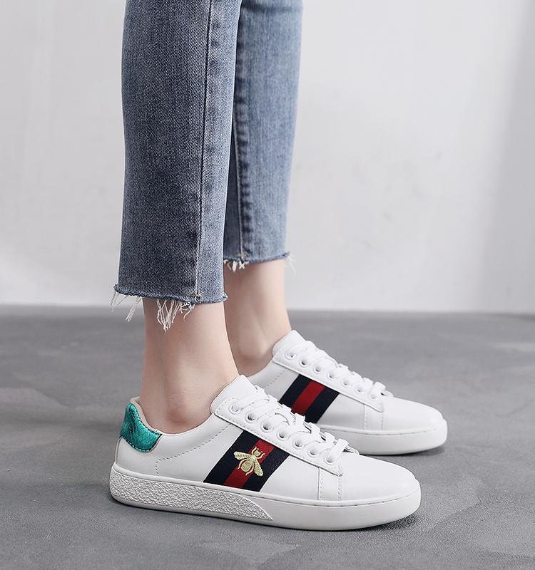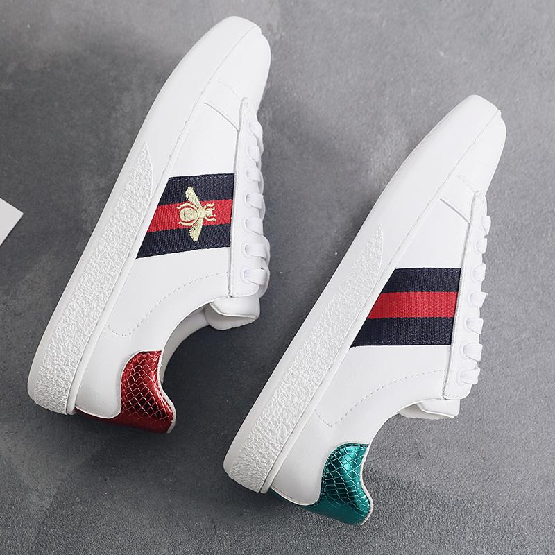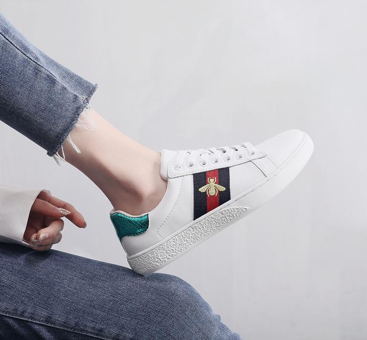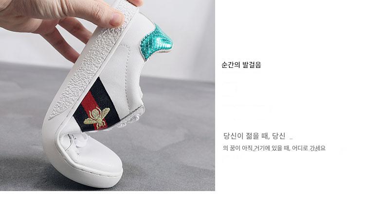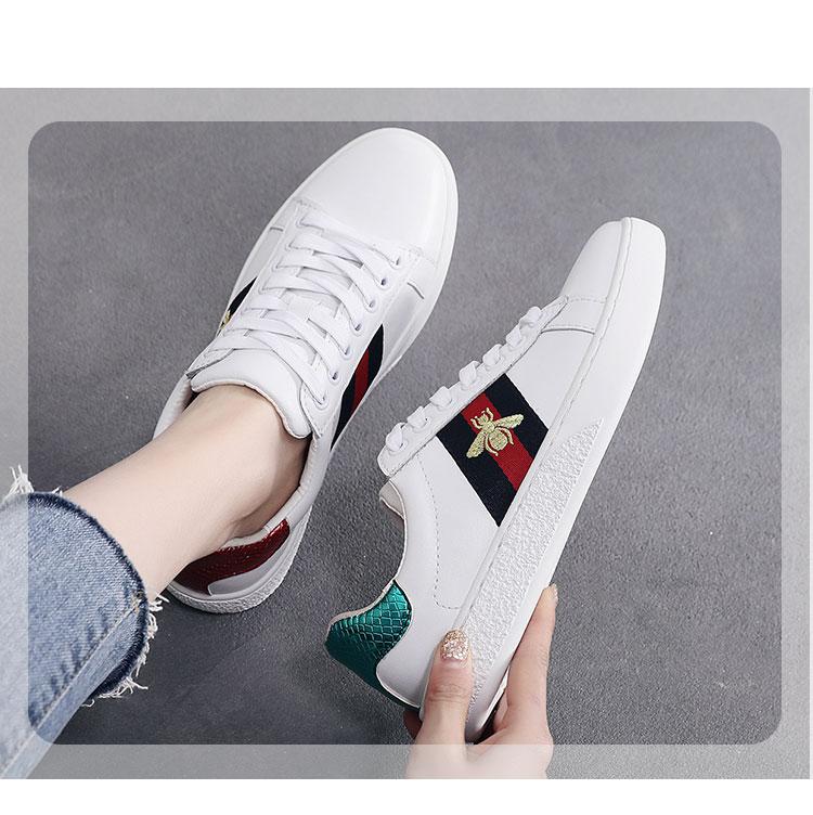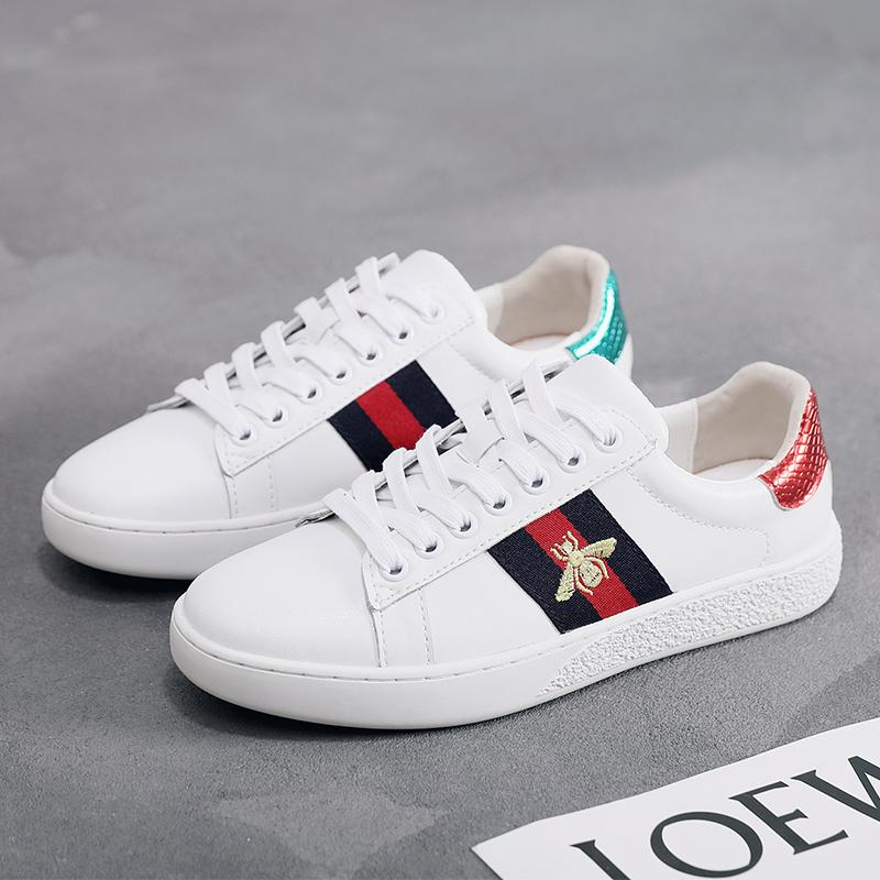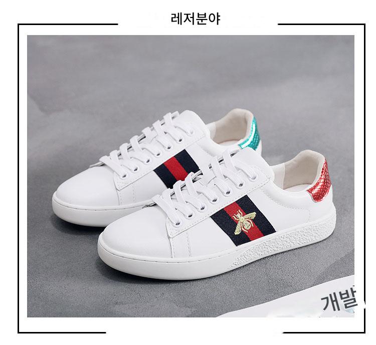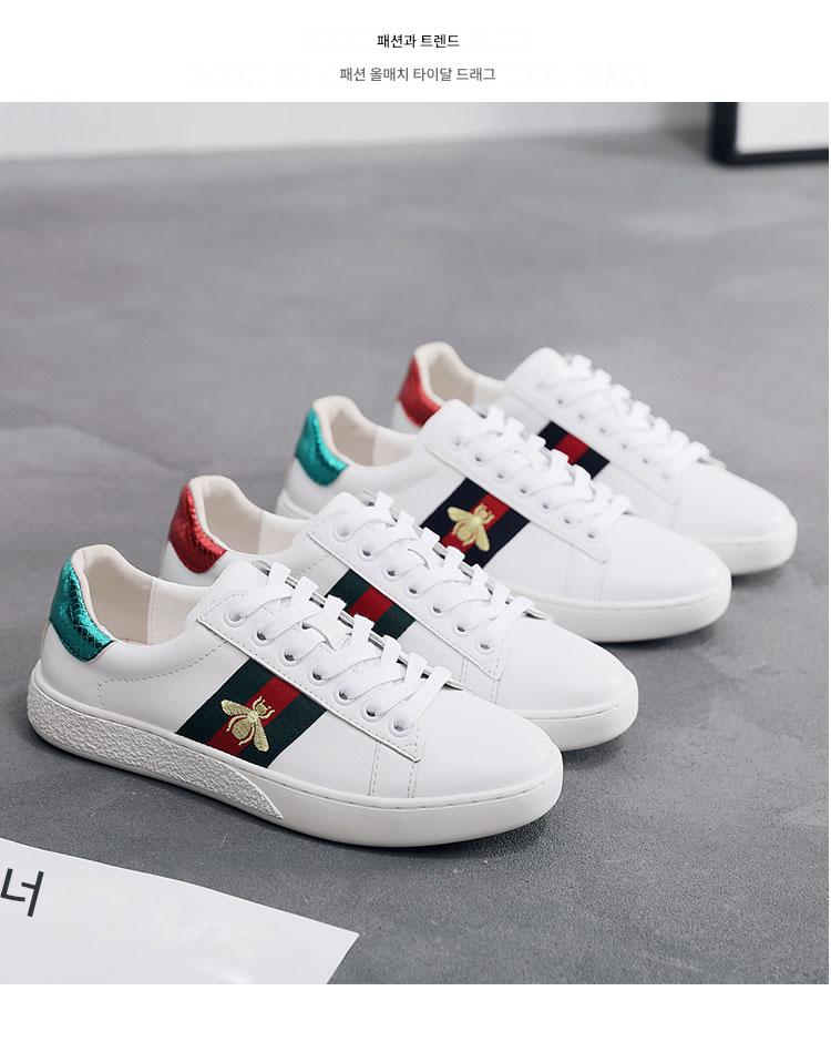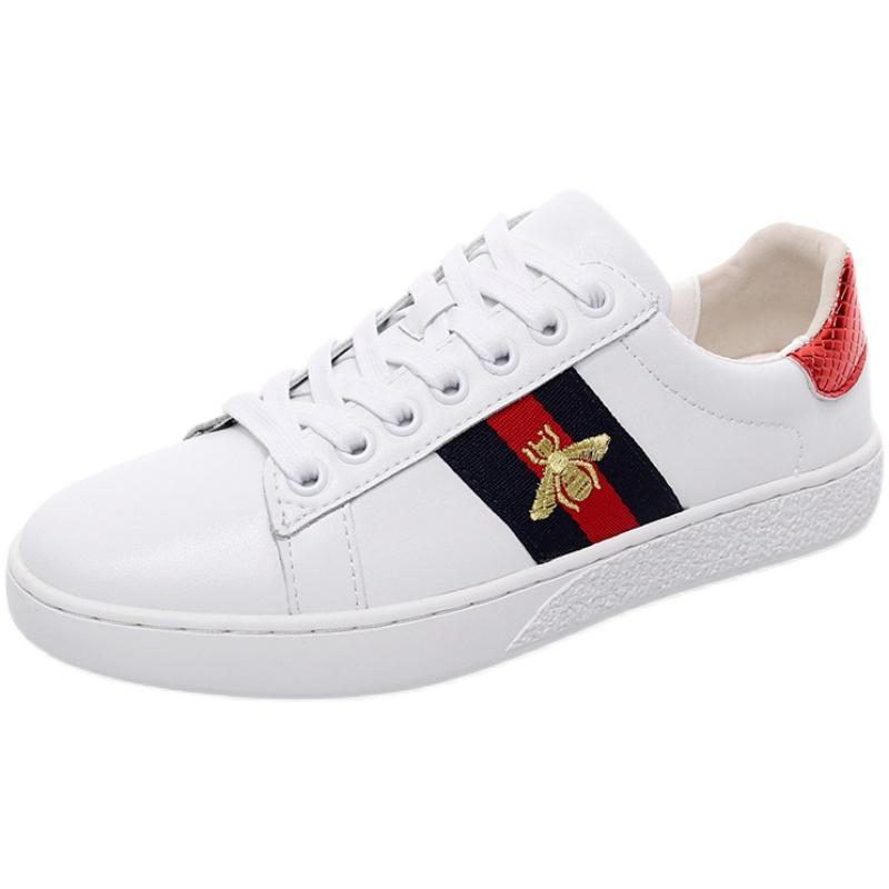 2024 가을 신상 내부 높이 증가 자수 꿀벌 흰색 신발 여성 캐주얼 신발 올매치 정품 가죽 플랫 신발 여성