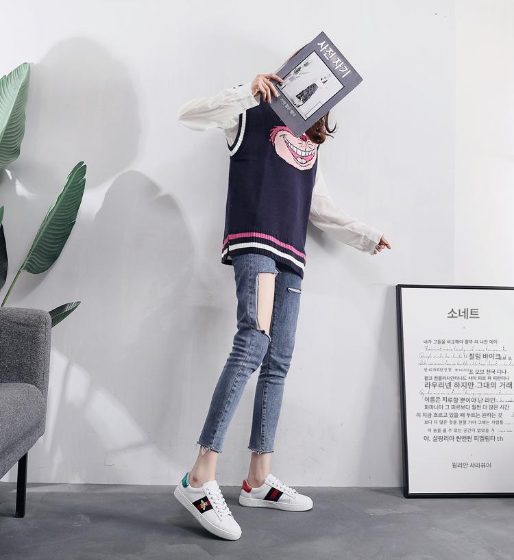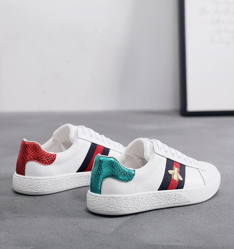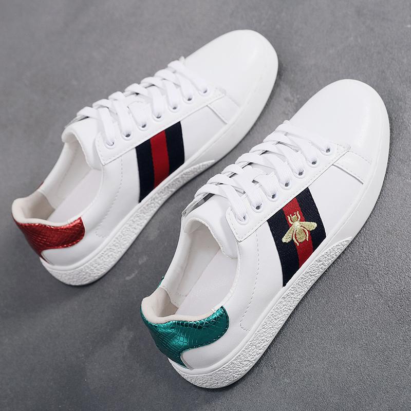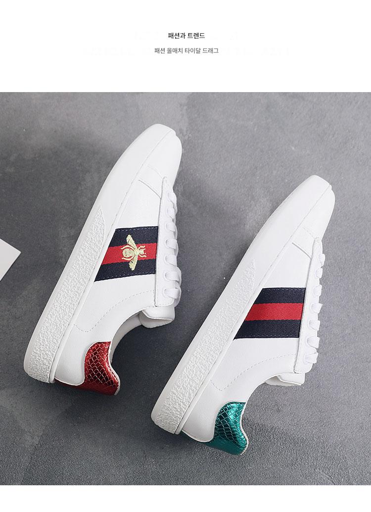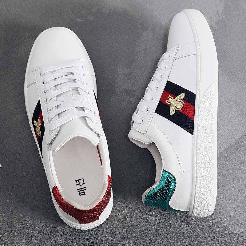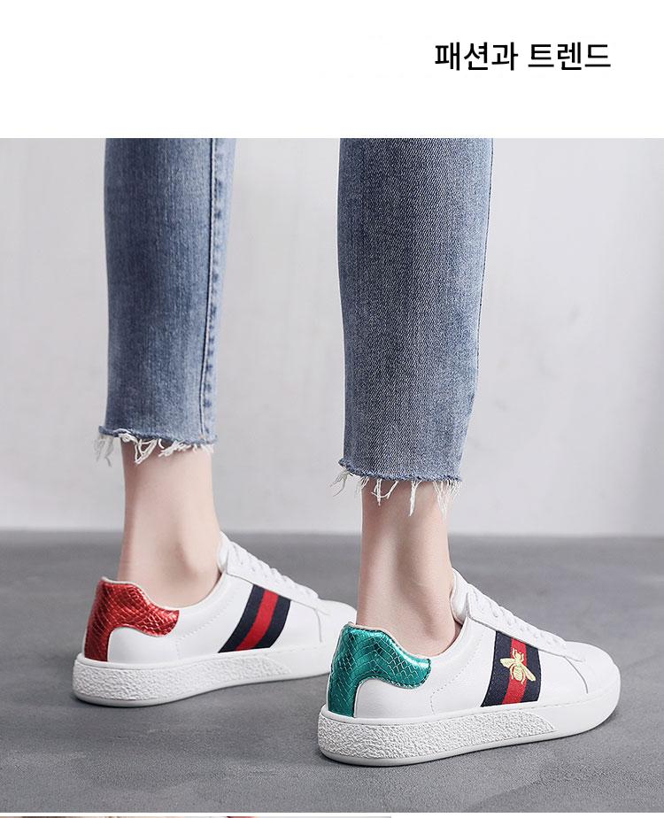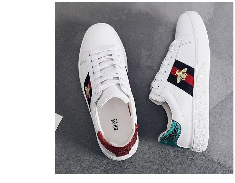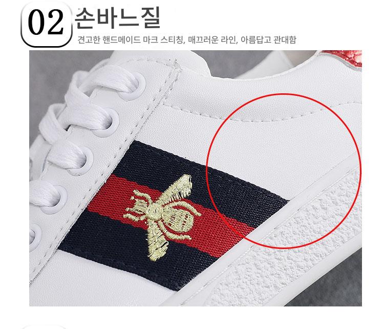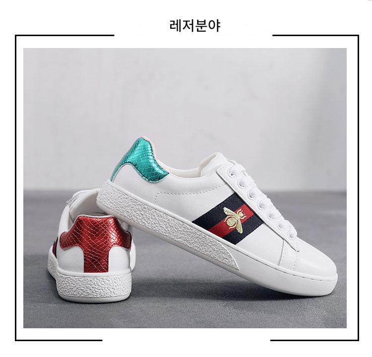 2024 가을 신상 내부 높이 증가 자수 꿀벌 흰색 신발 여성 캐주얼 신발 올매치 정품 가죽 플랫 신발 여성