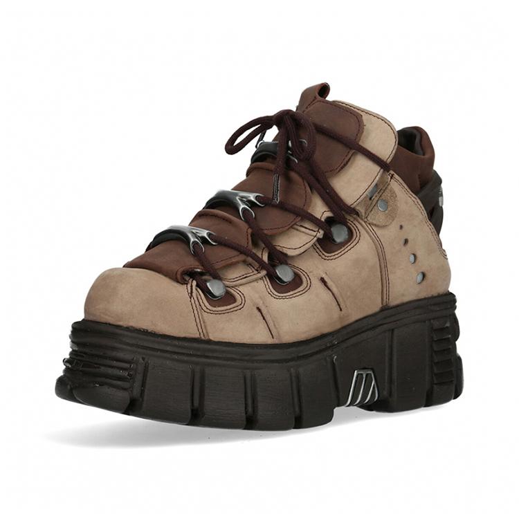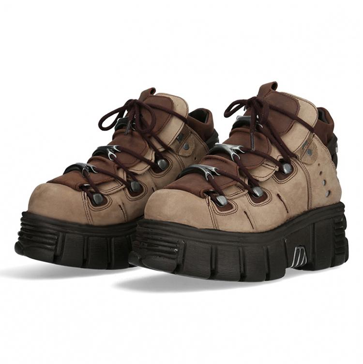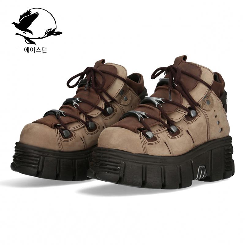 2024 봄 신상품 스페인 레트로 컬러 콘트라스트 펑크 스타일 정품 가죽 플랫폼 키 높이 향상 두꺼운 밑창 신발 British Daddy Shoes