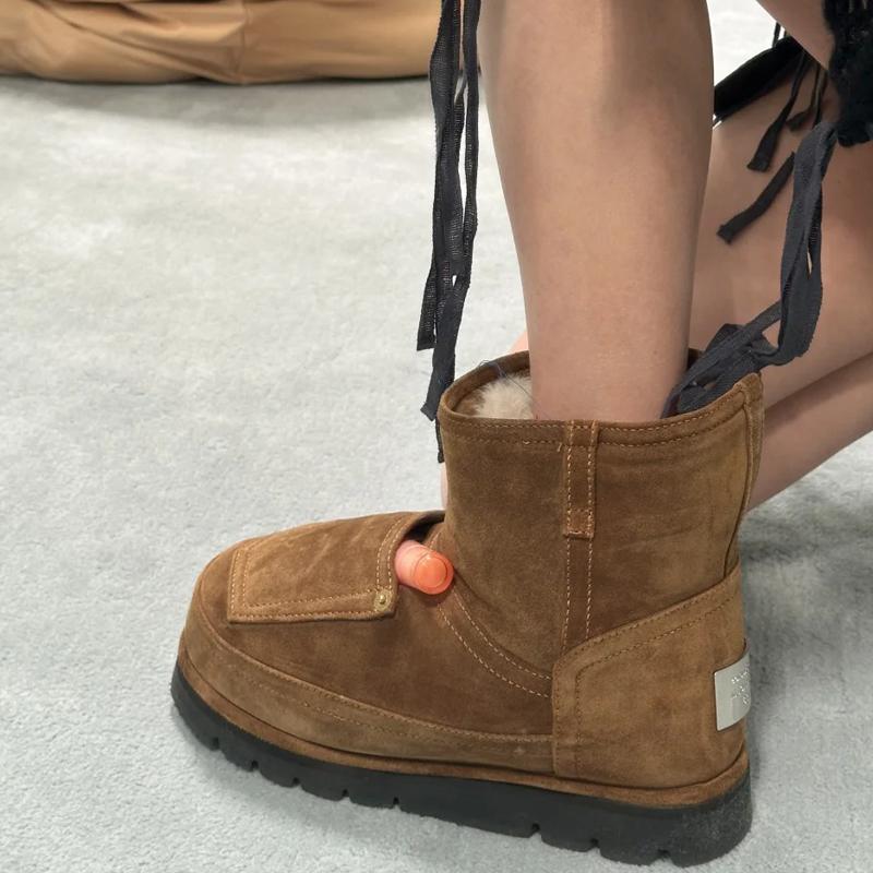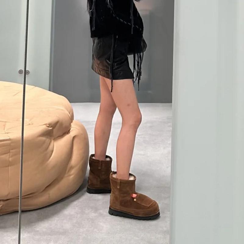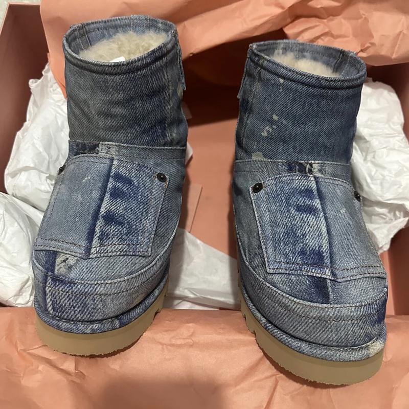 2024 짧은 배럴 코튼 부츠, 모피 및 가죽 스노우 부츠, 벨벳 레트로 데님 스노우 부츠, 두꺼운 밑창 라운드 투 부츠