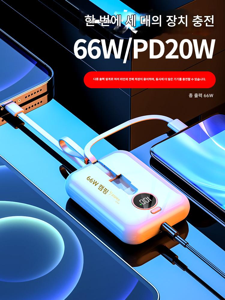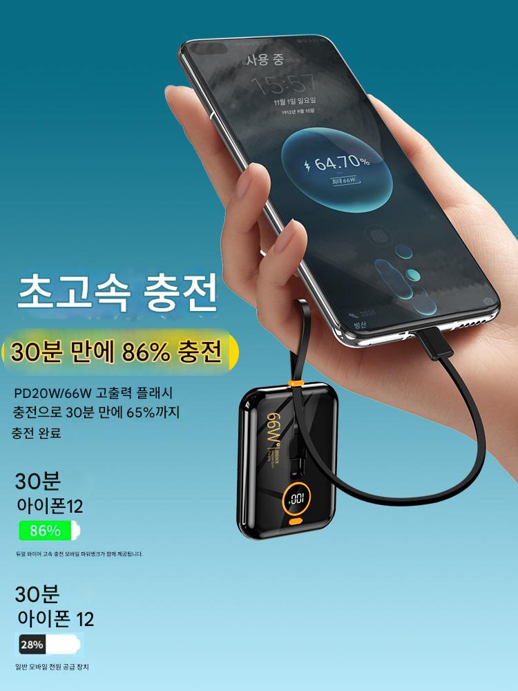 2025년형 신형 파워뱅크, 애플, 화웨이 휴대폰에 적합, 초고속 충전 내장 케이블, 대용량 20000mAh