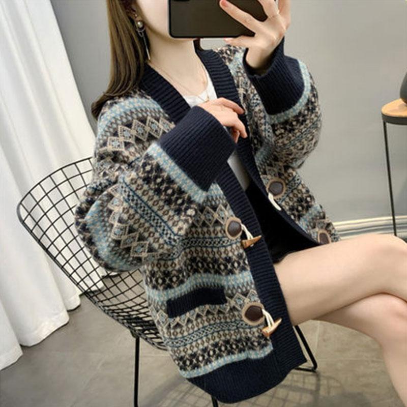 2025년 가을 신상 여성 스웨터 재킷 루즈 패션 두꺼운 니트 카디건 초가을 스타일 상의 여성 의류