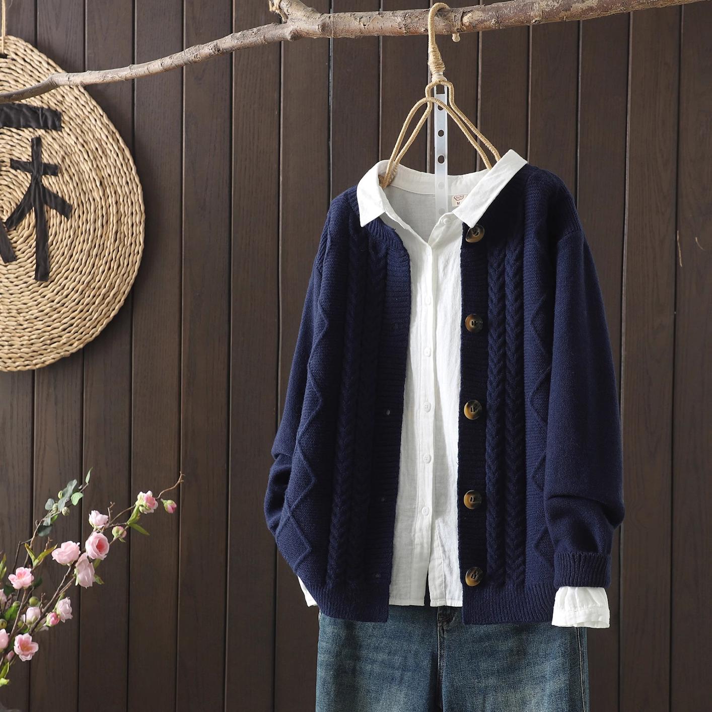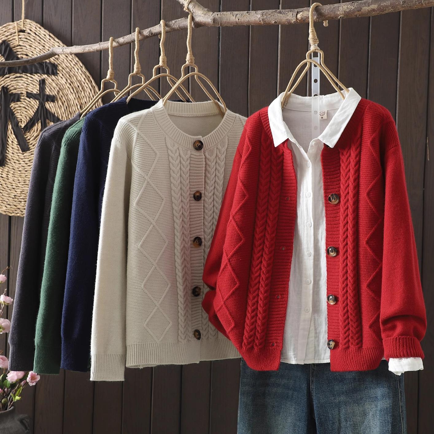 2025년 봄 가을 신상품 니트 가디건 여성 루즈한 기질 레이지 스타일 짧은 스웨터 재킷 라운드넥 소프트 탑