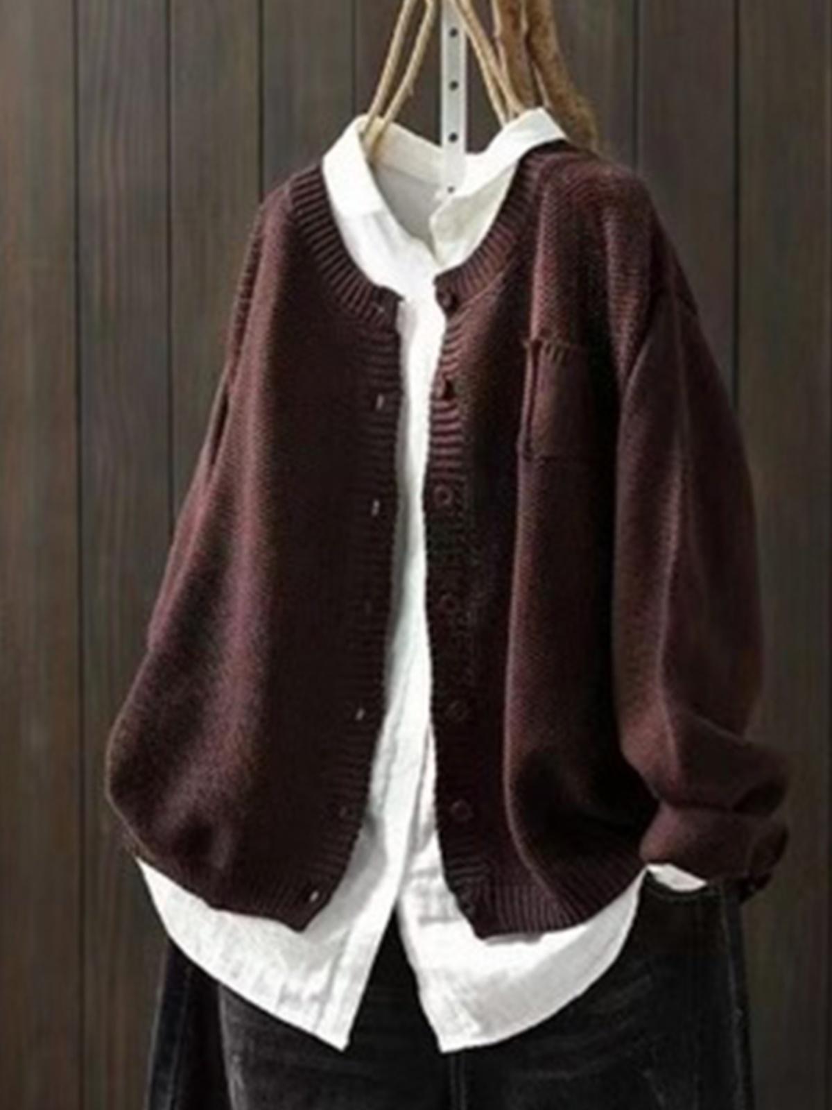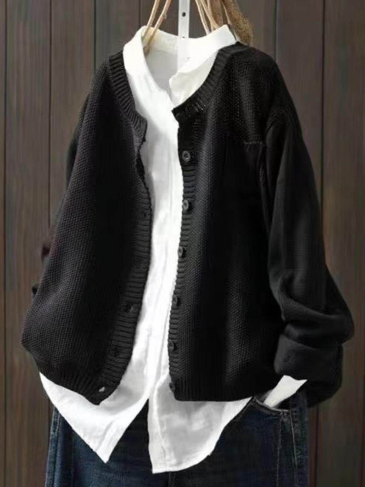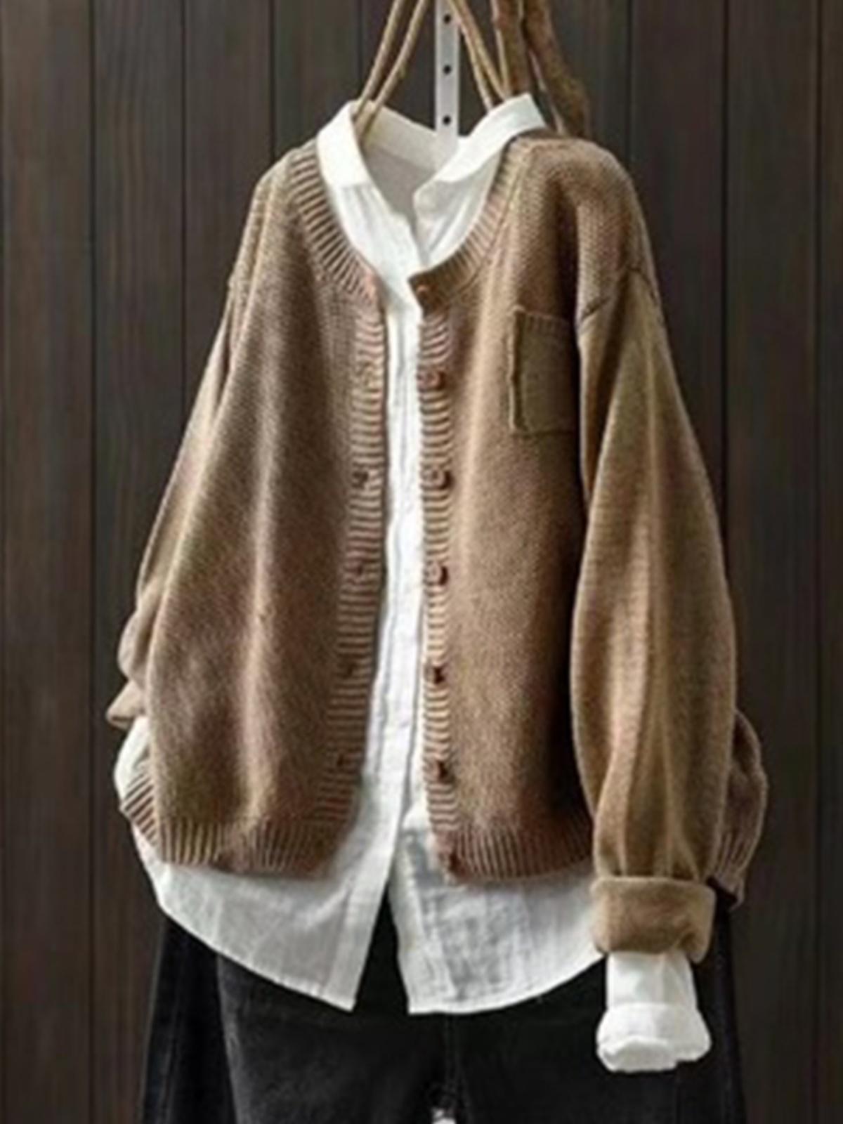 2025년 봄 가을 신상품 루즈 니트 가디건 재킷 아티스틱 라지 사이즈 캐주얼 올매치 롱슬리브 스웨터 솔리드 컬러 탑