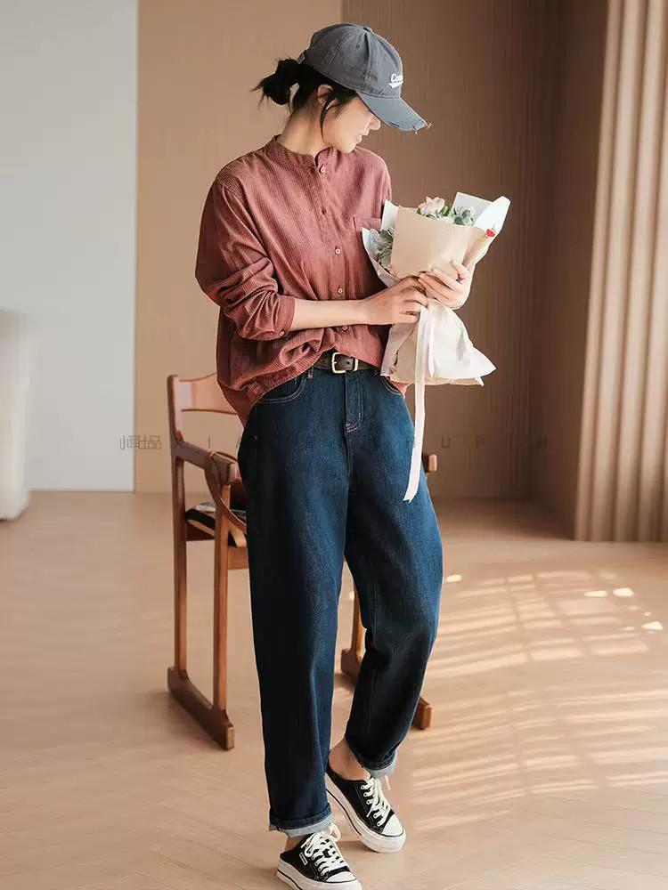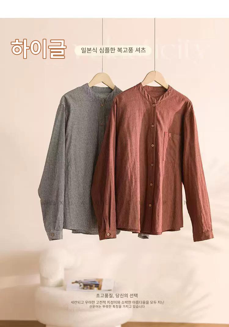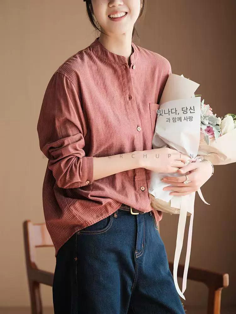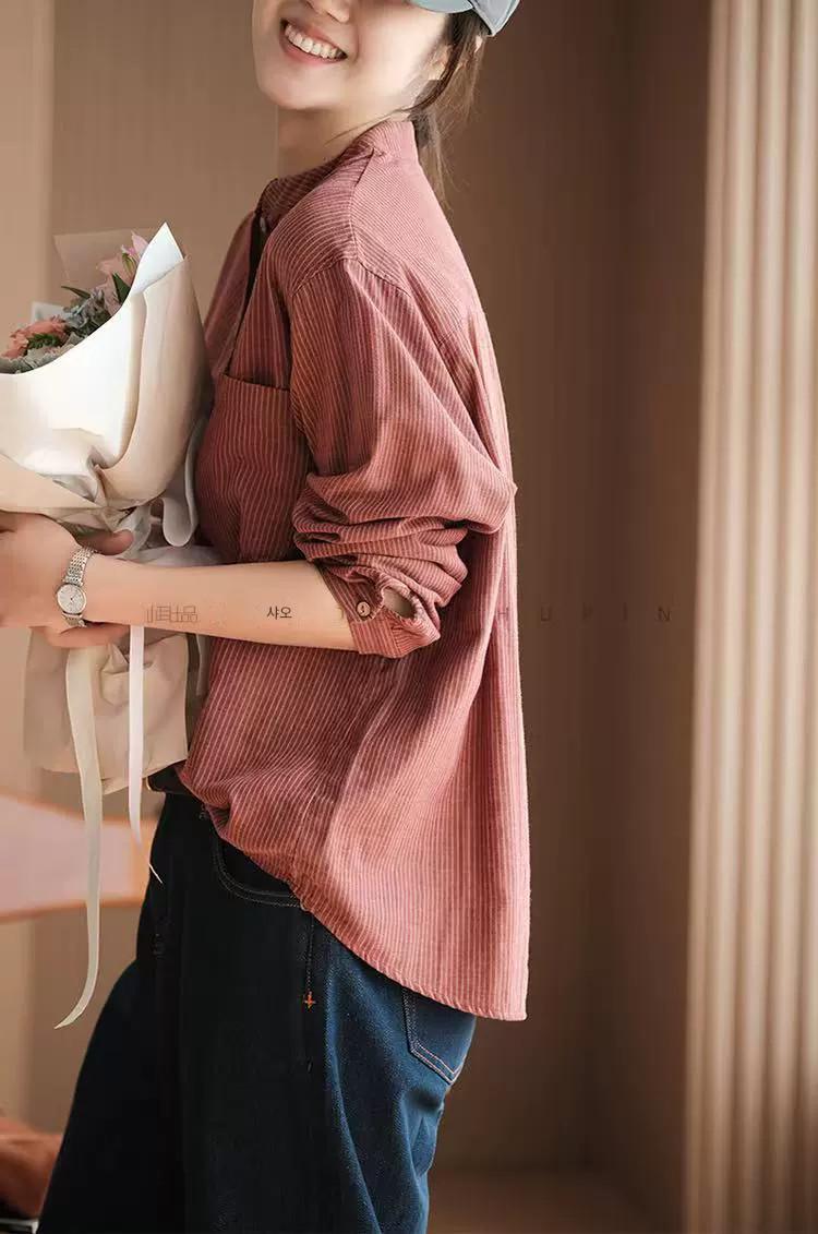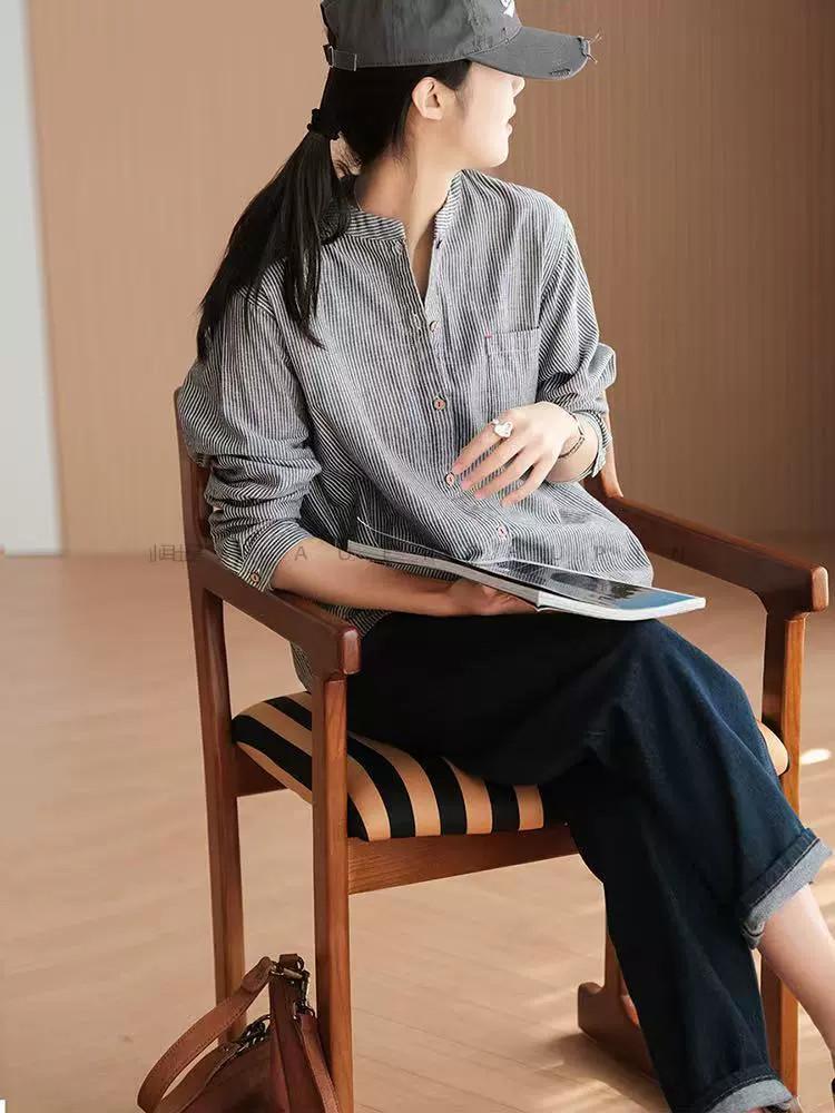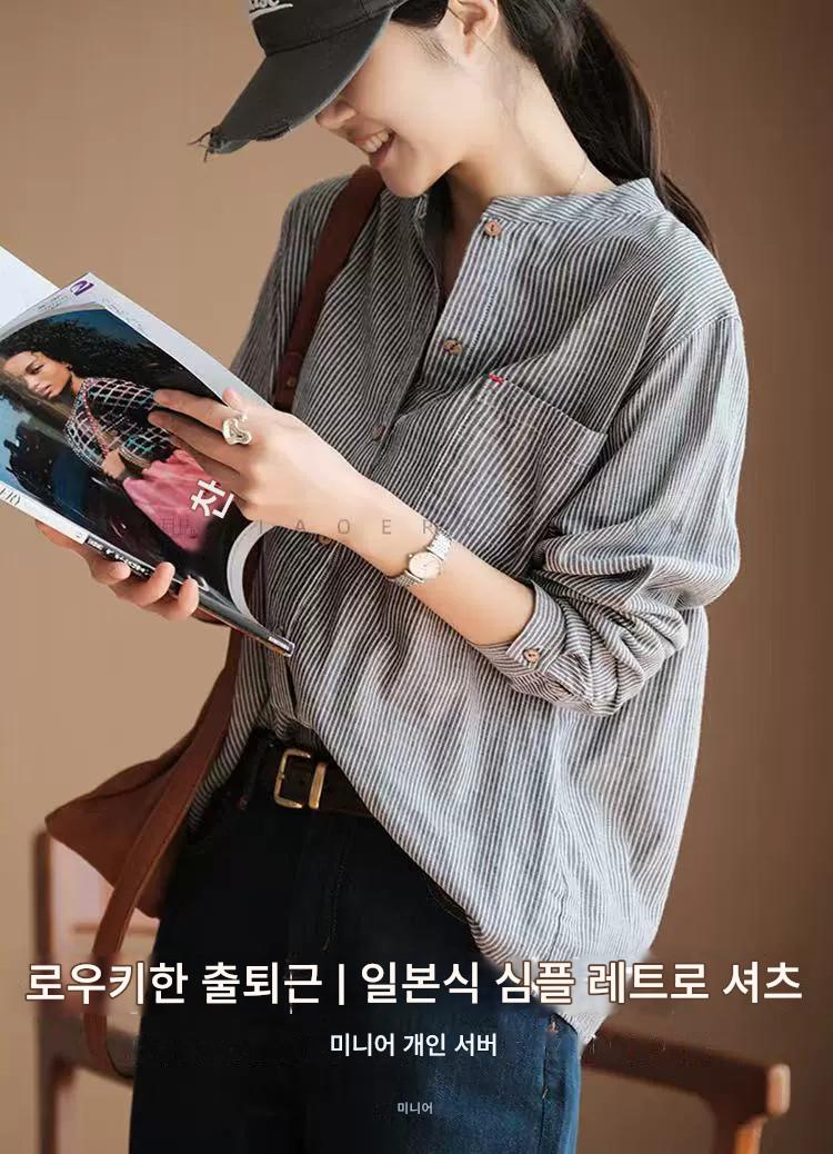 2025년 봄 가을 신상품 패션 심플 스트라이프 코튼 긴팔 셔츠 여성용 루즈 슬림 기질 캐주얼 상의