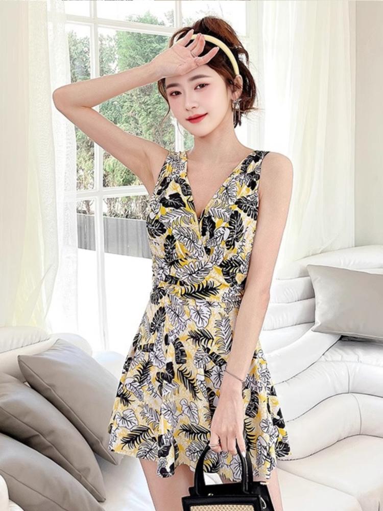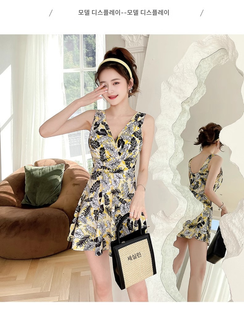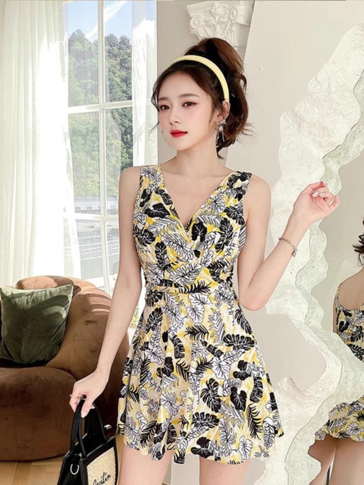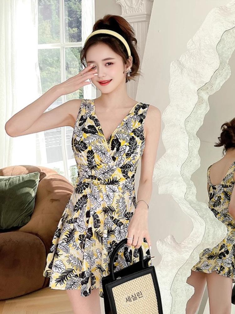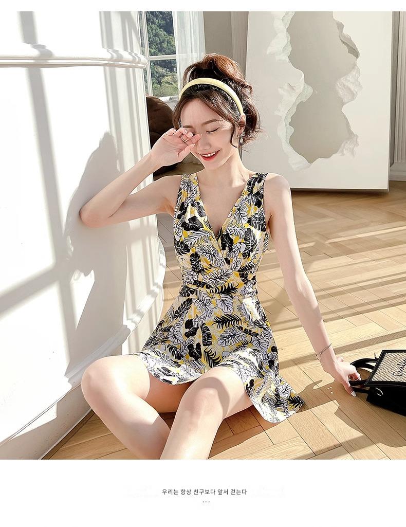 2025년 신상품 여성용 원피스 수영복 보수적 배 가리기, 슬리밍, 작은 가슴 밀어내기 스틸 서포트 여성 수영복 온천