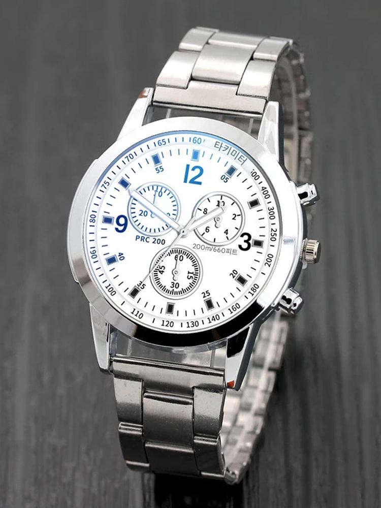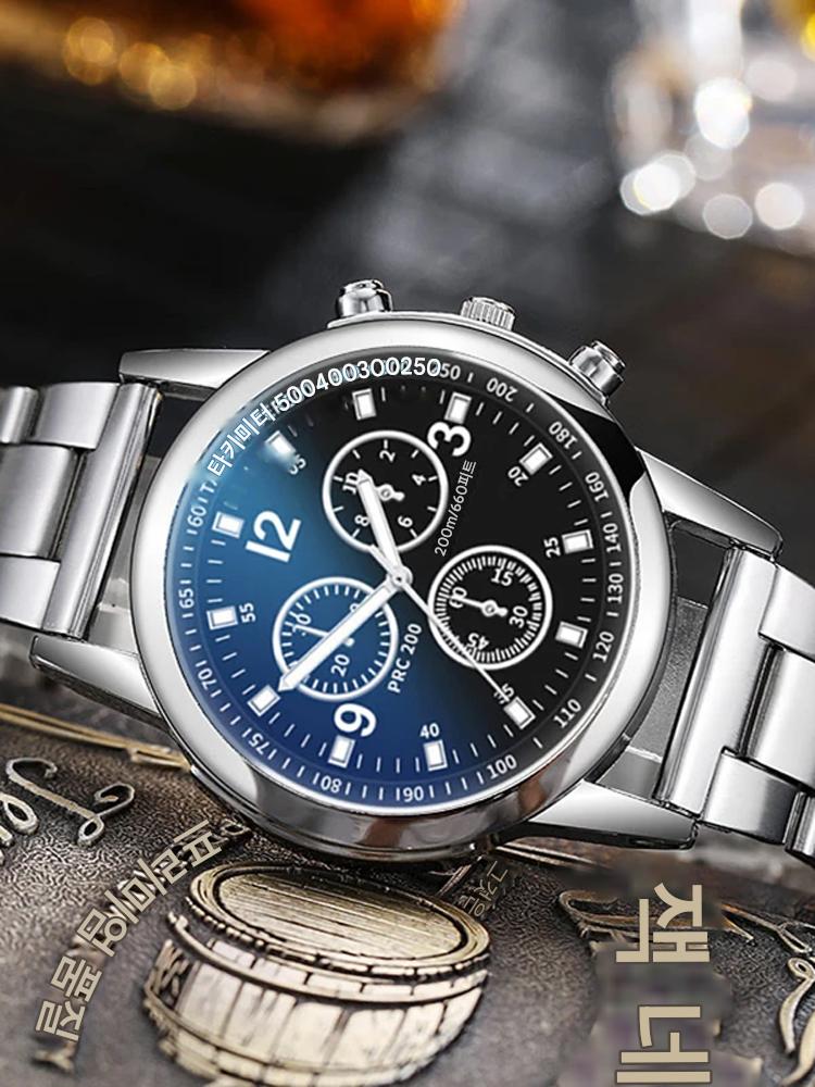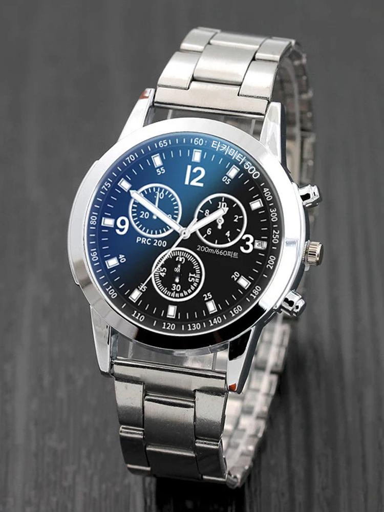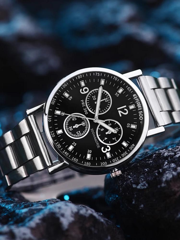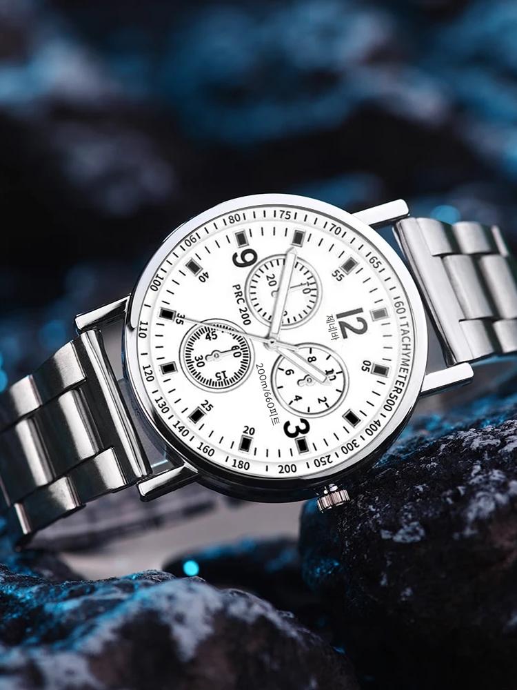 2025년 신상품 패션 시계 남성용 스틸 밴드 쿼츠 시계 비즈니스 캐주얼 방수 발광 3개 눈 6개 바늘