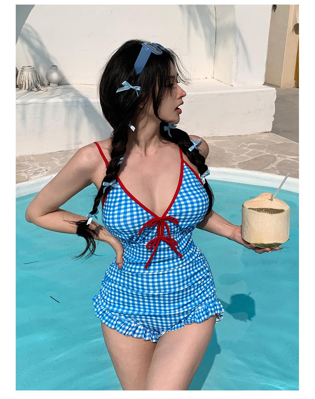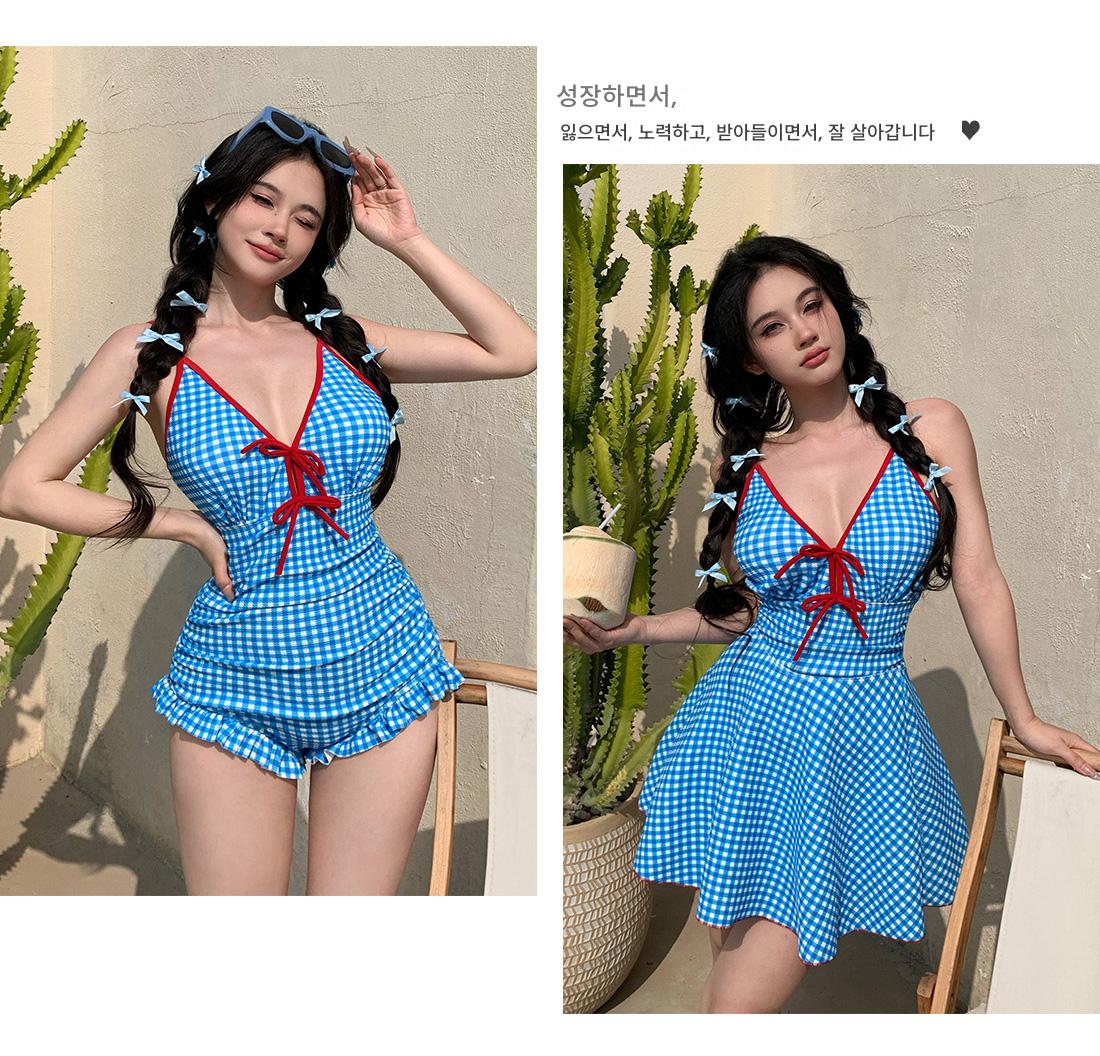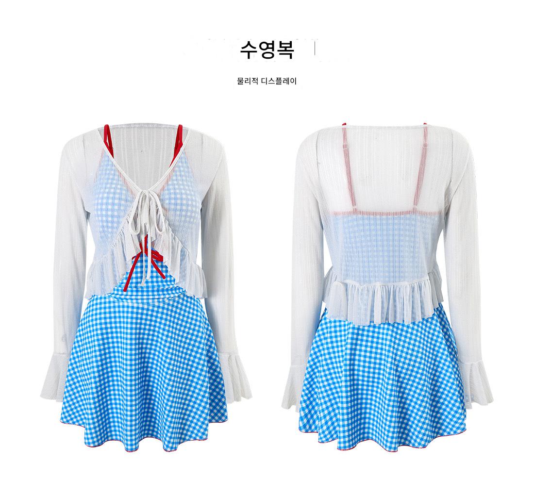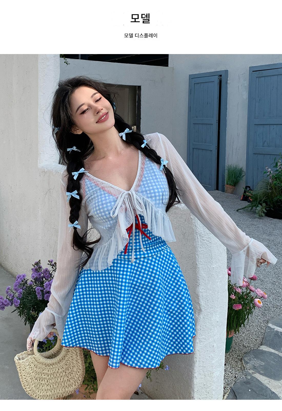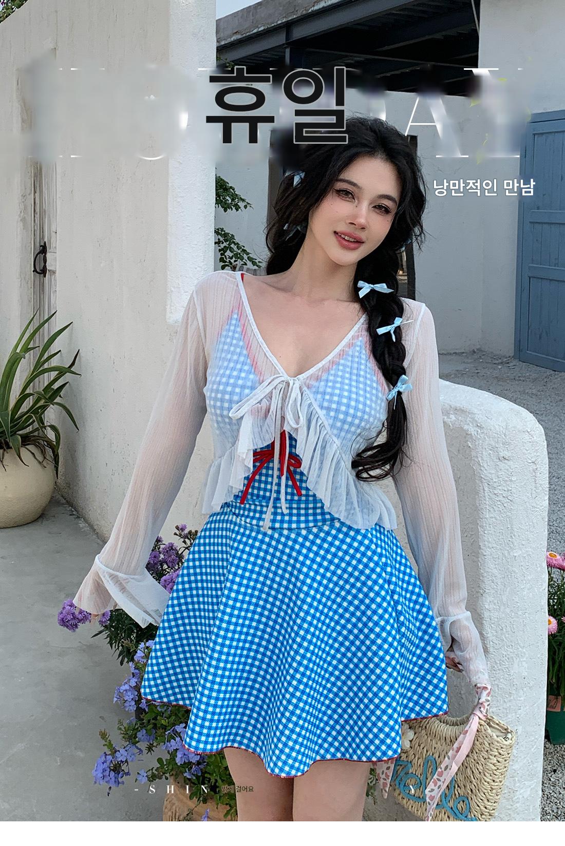 2025년 신작 살짝 뚱뚱한 여자 수영복 여자 큰 사이즈 원피스 삼각 스커트 스타일 3피스 세트 살을 가리고 얇은 블라우스 온천을 보여줌