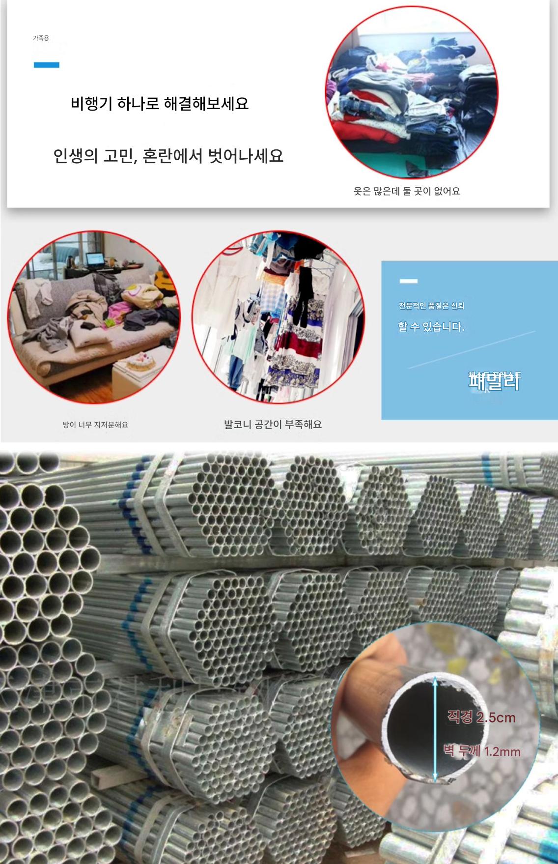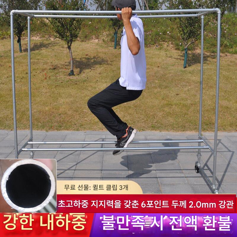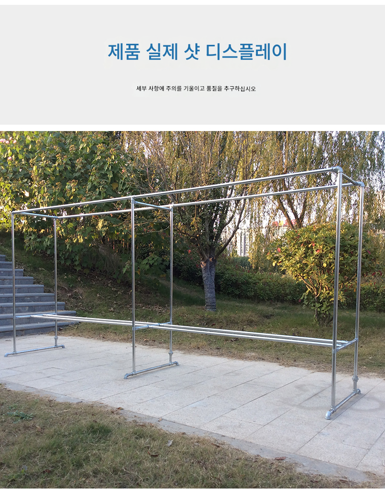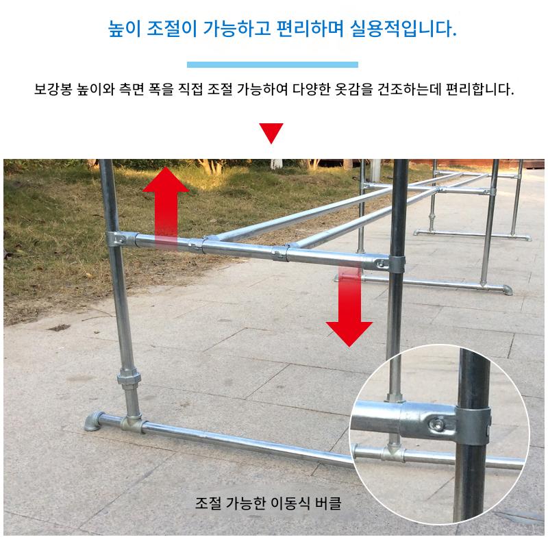 2mm 두께 아연 도금 강관 옷 건조대 바닥 홈 발코니 옷 걸이 야외 간단한 이중 막대 물 파이프