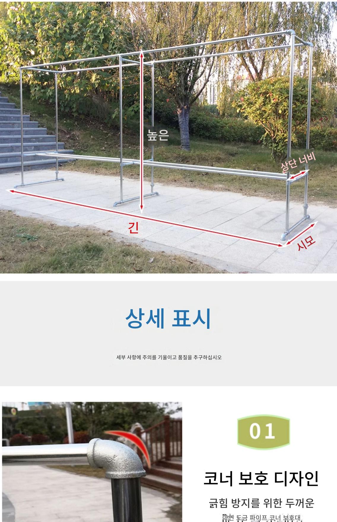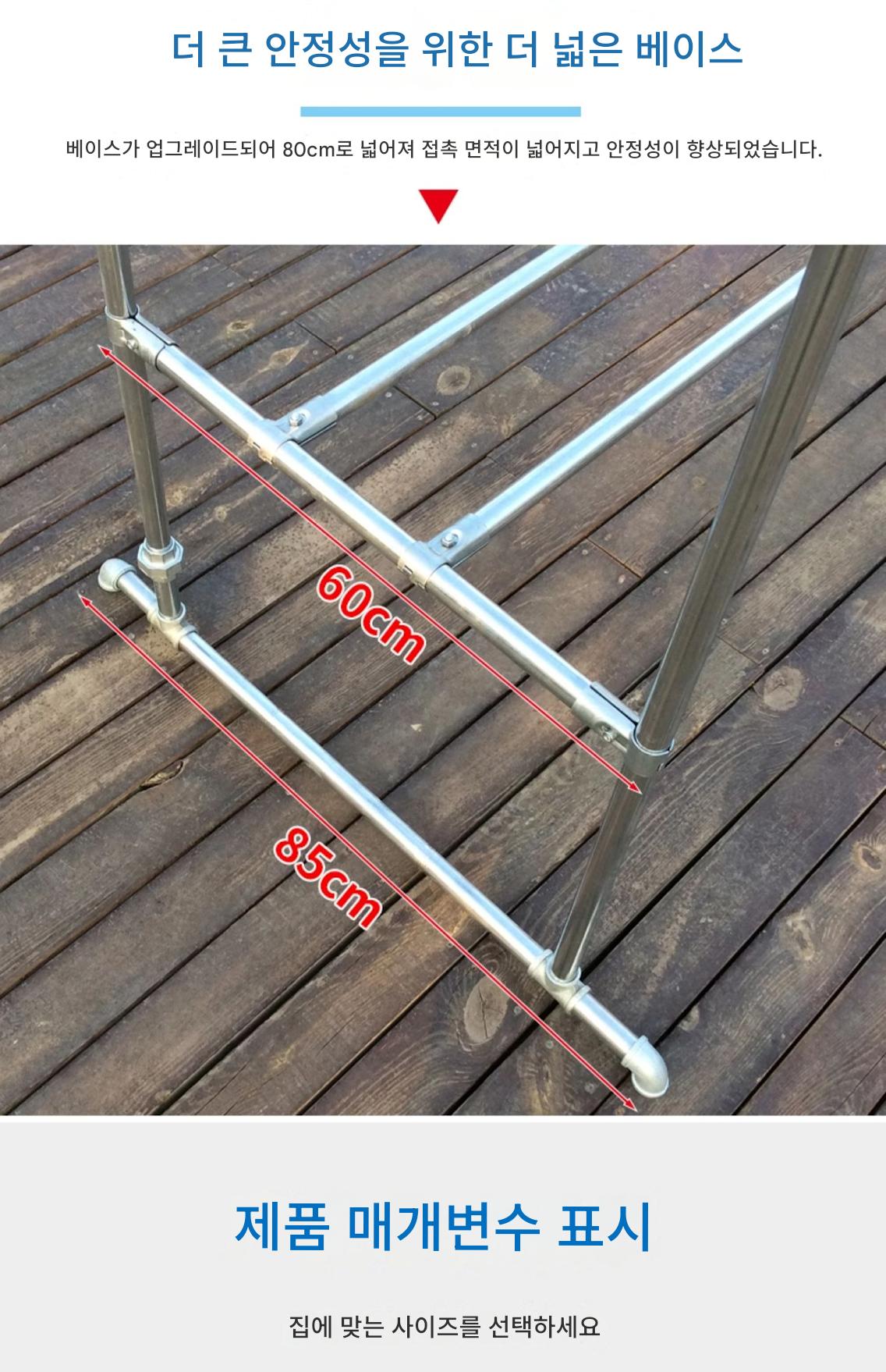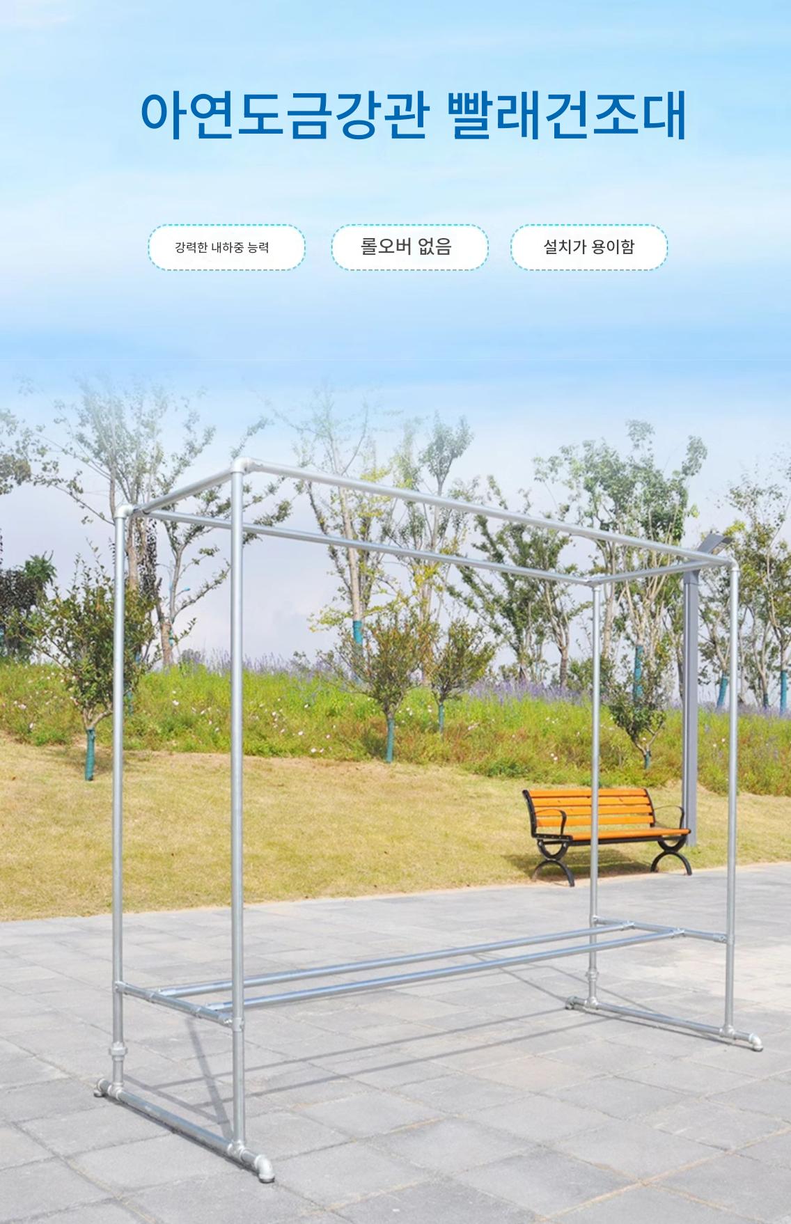 2mm 두께 아연 도금 강관 옷 건조대 바닥 홈 발코니 옷 걸이 야외 간단한 이중 막대 물 파이프