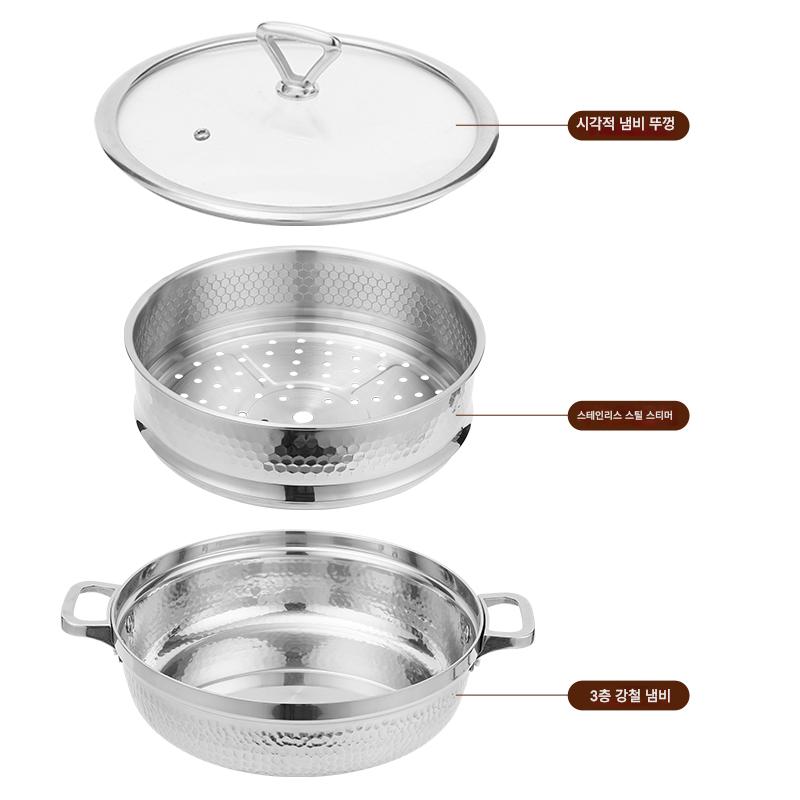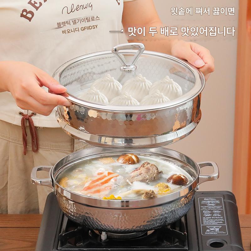 3겹 강철 대용량 해산물 찜통 증기 냄비 유도 조리기 상업용 가정용 야외 얕은 수프 냄비 뜨거운 냄비 사우나 치킨