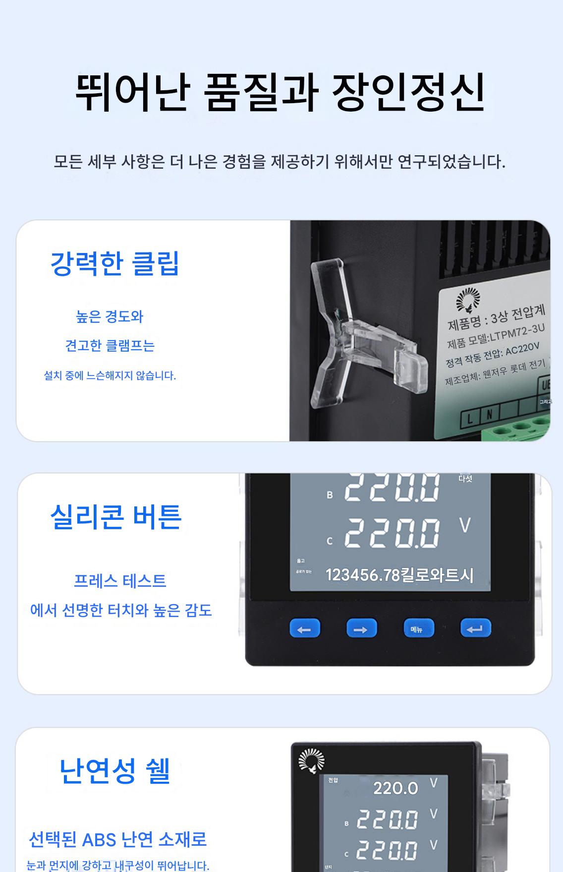 3상 디지털 디스플레이 다기능 전력계 지능형 LCD 전류 전압 전력 주파수 전기 에너지 조합 모니터