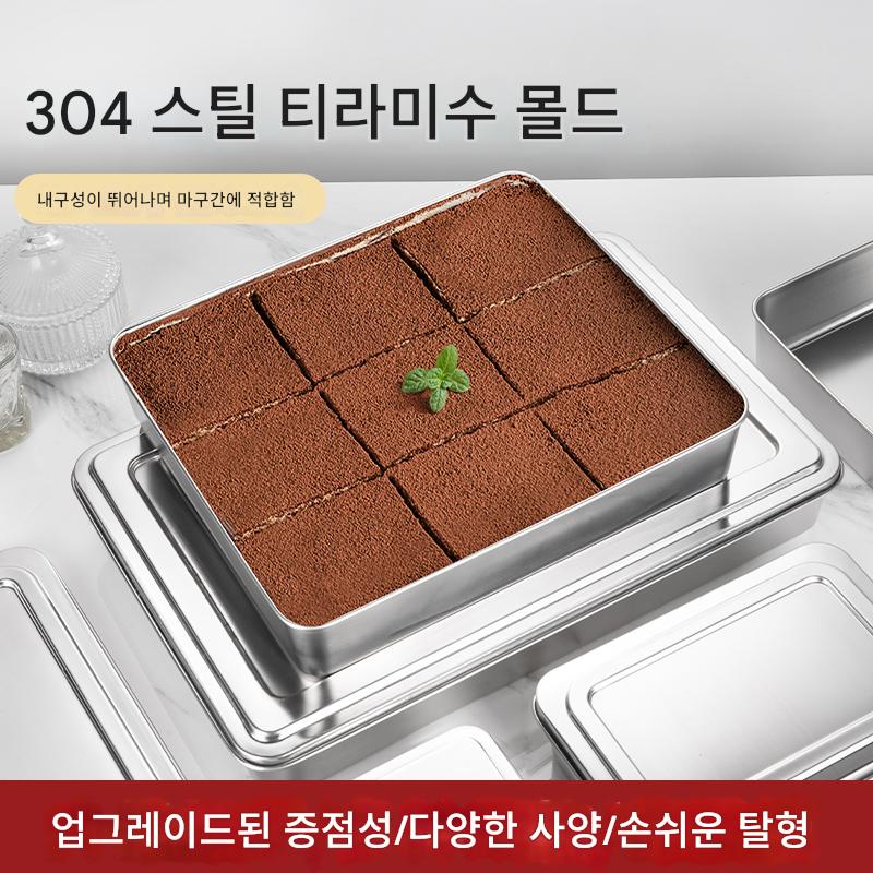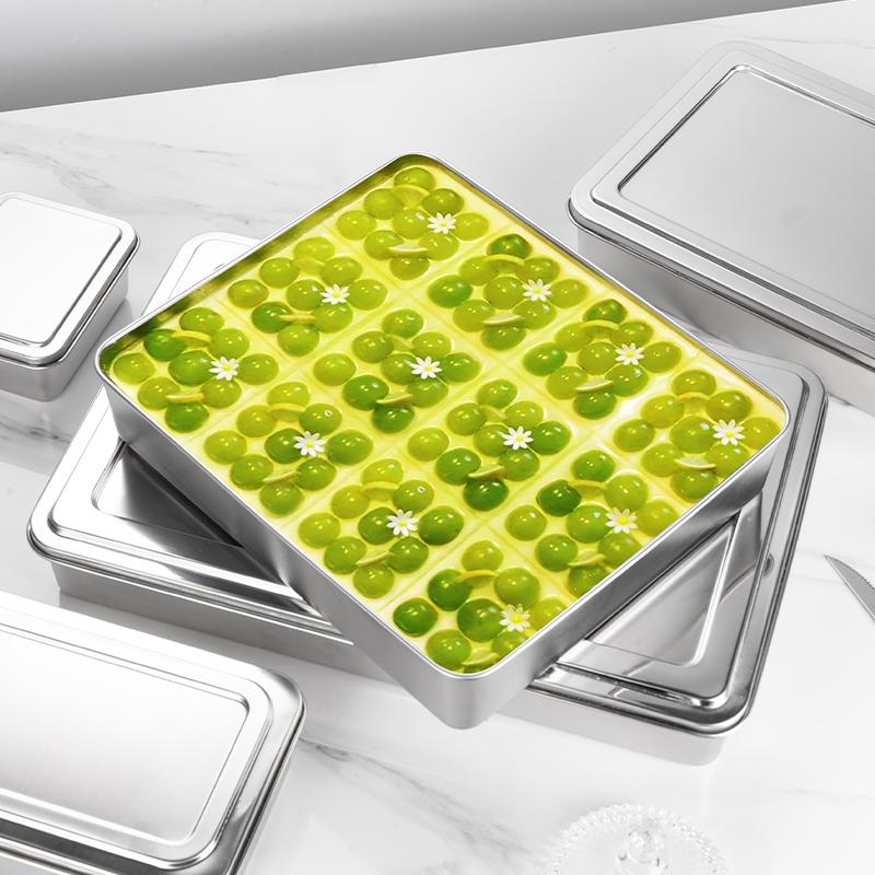 304 스테인리스 스틸 티라미수 케이크 스톨 몰드 식품 등급 상자 직사각형 디저트 베이킹 도구