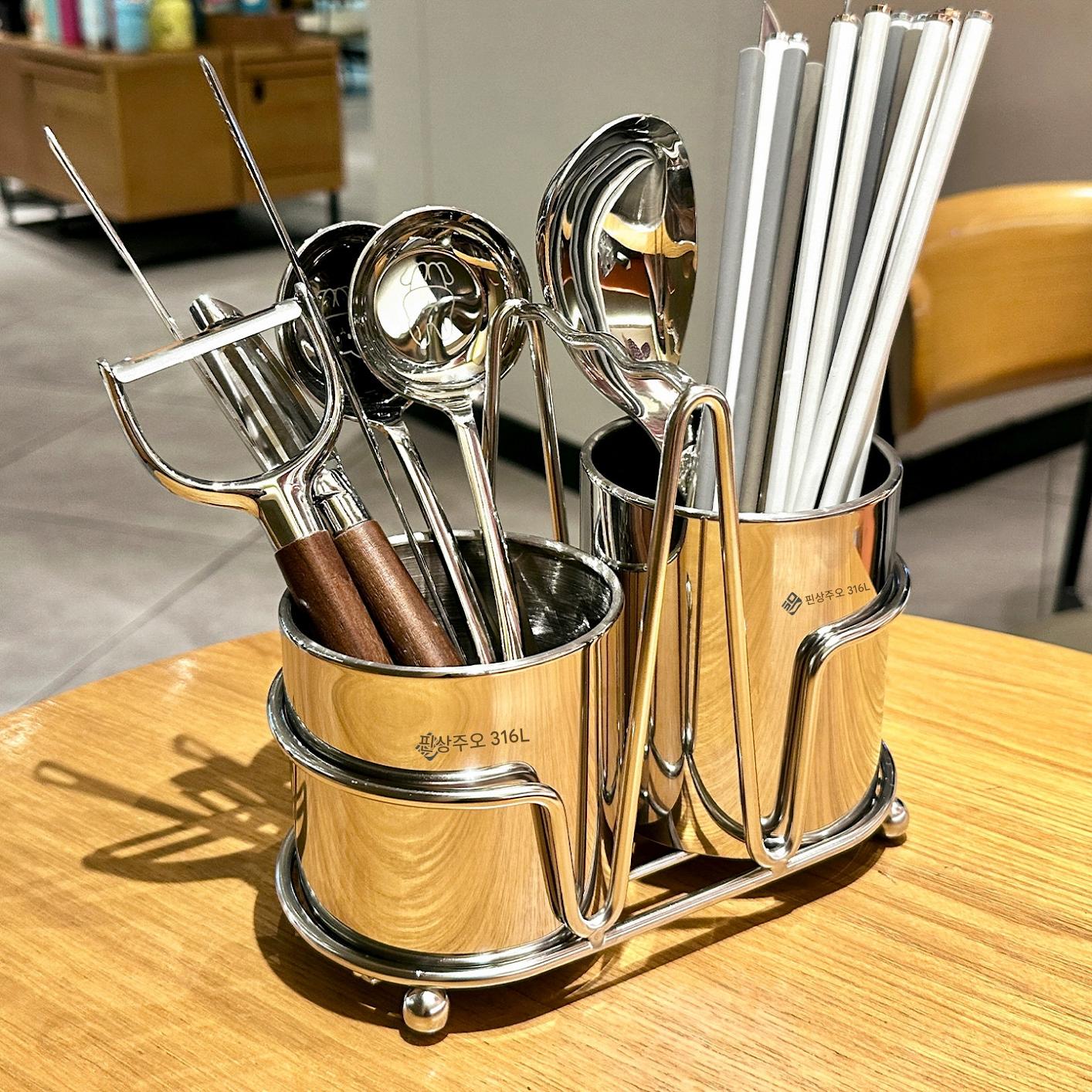 316 스테인리스 스틸 칼 붙이 튜브 가정용 고급 주방 젓가락 케이지 숟가락 보관 상자 보관 배수 랙 저장 탱크