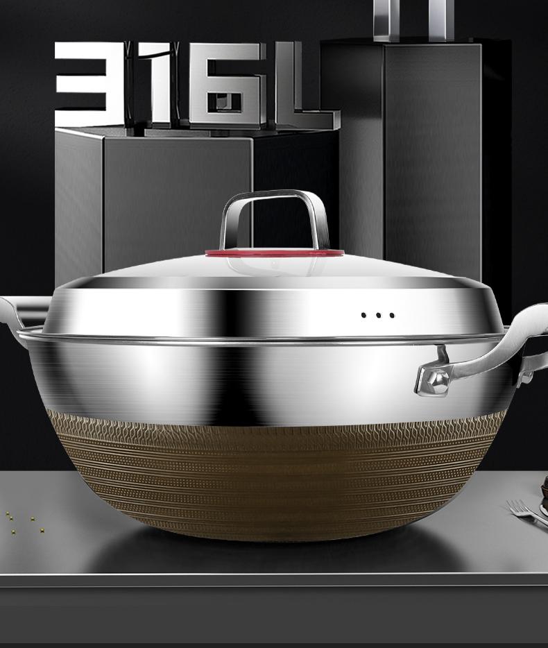 316 스테인리스 스틸 프라이팬 노스틱 팬 가정용 평평한 바닥 초대형 더블 이어 냄비 깊은 프라이팬 가스 스튜 냄비