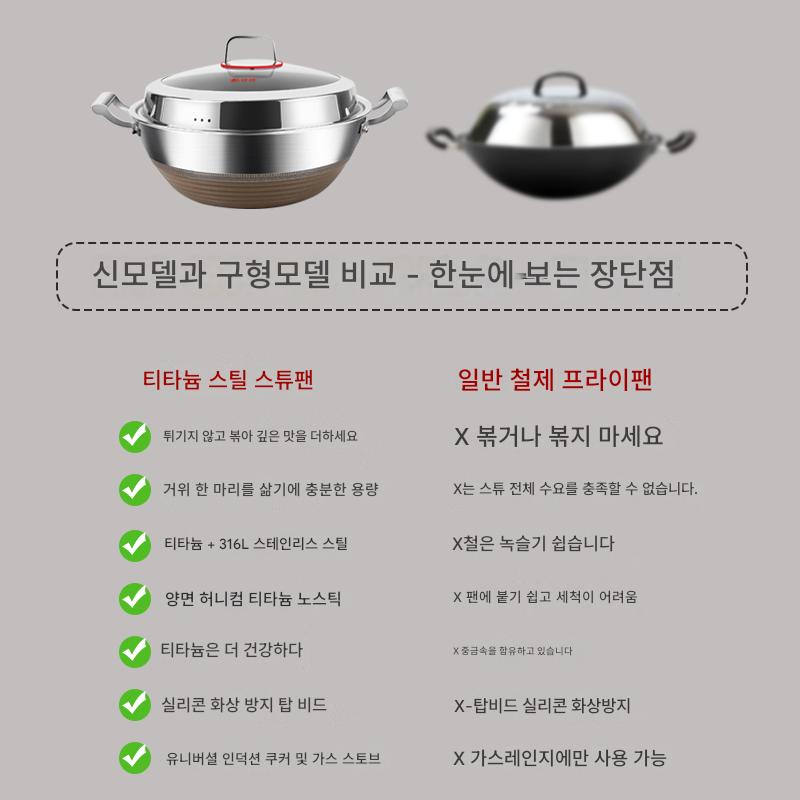 “316 스테인리스 스틸 프라이팬 노스틱 팬 가정용 평평한 바닥 초대형 더블 이어 냄비 깊은 프라이팬 가스 스튜 냄비”의 첫 상품평을 남겨 주세요