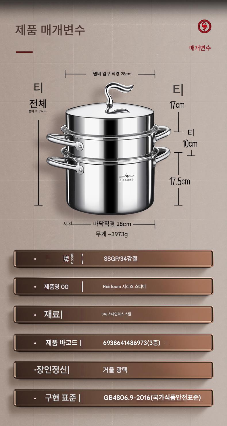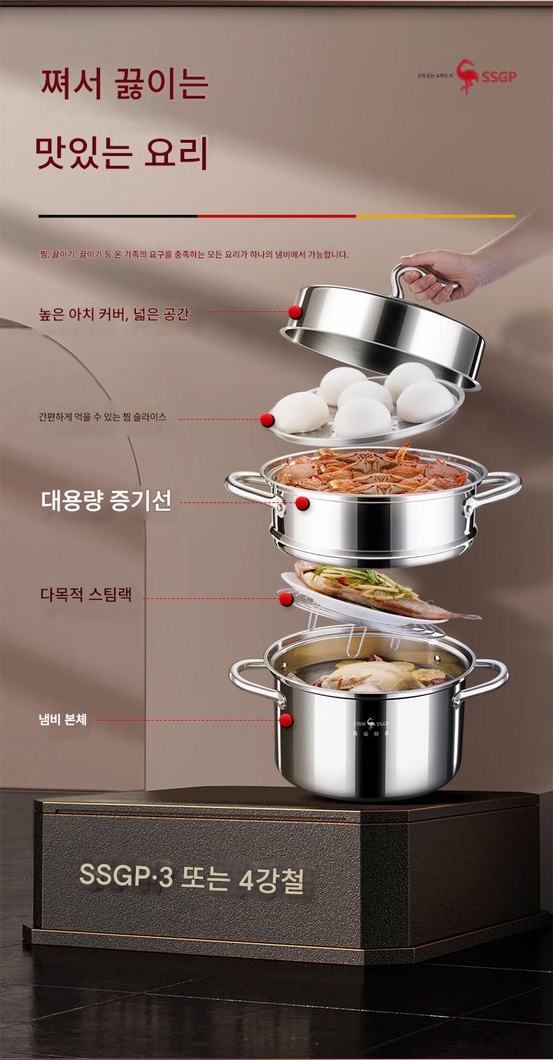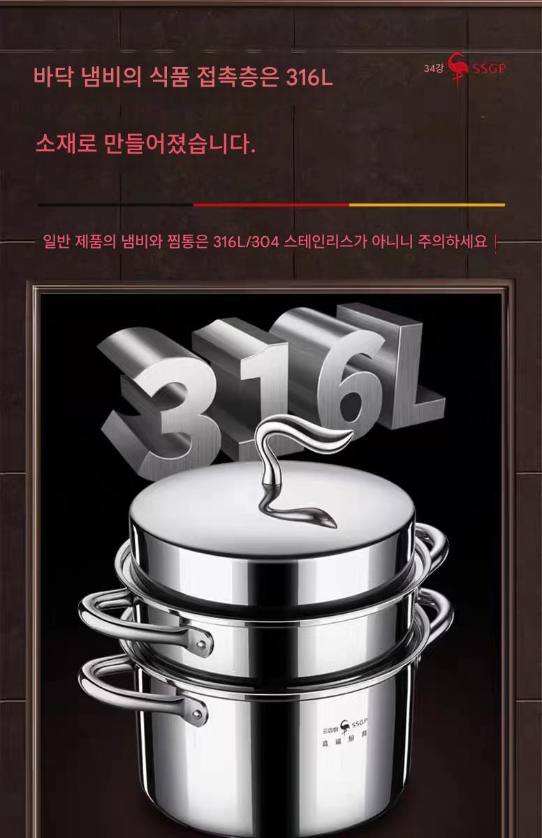 3~4단 스틸 찜통 316L 스테인리스 가정용 국 냄비 대용량 찜통 찜통 일체형 냄비 다층 찜통 신제품