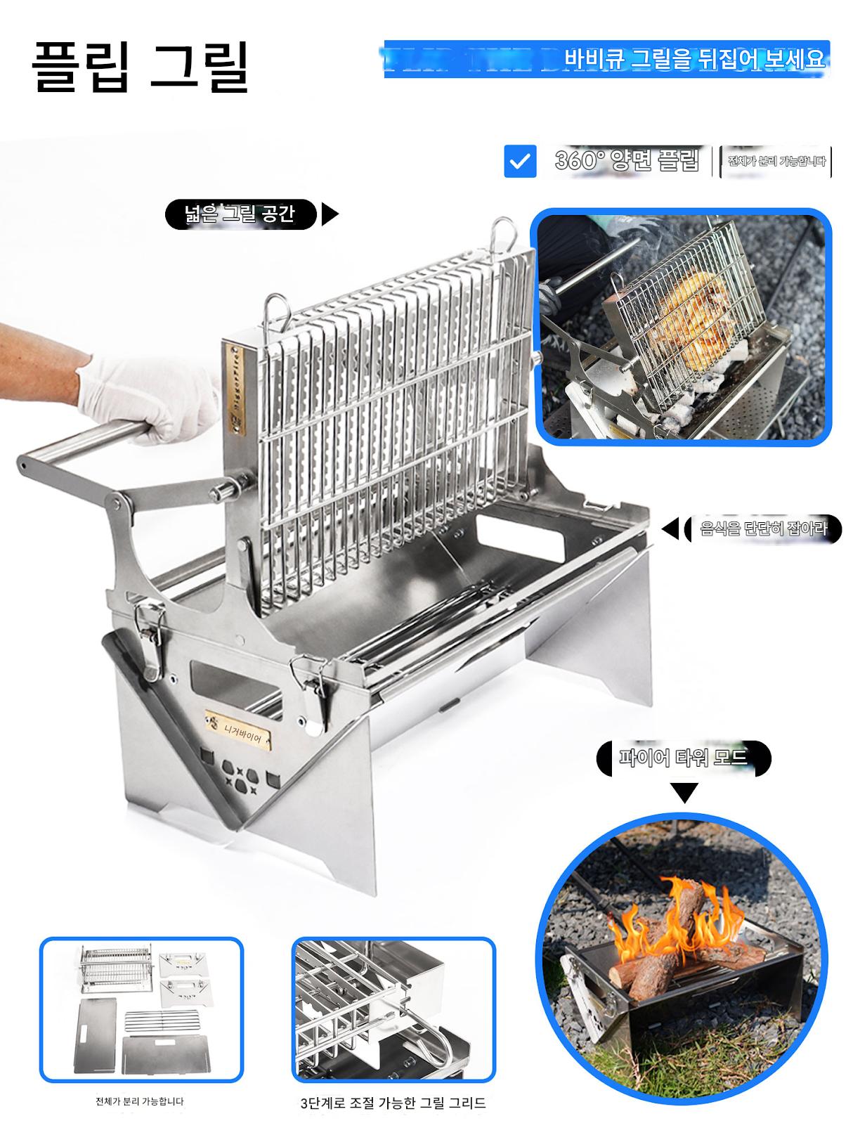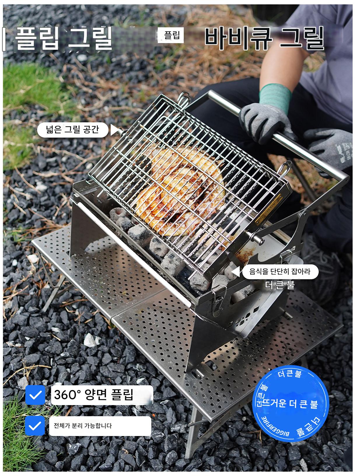 360°【플립 그릴】야외 파티오 바비큐 그릴 두꺼운 스테인리스 스틸 회전식 온도 조절