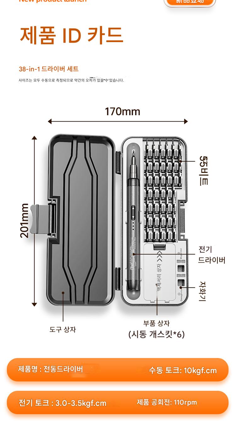 회색 수동 드라이버 38 in 1, 오렌지색 전동 드라이버 38 in 1, 회색 전동 드라이버 38 in 1
