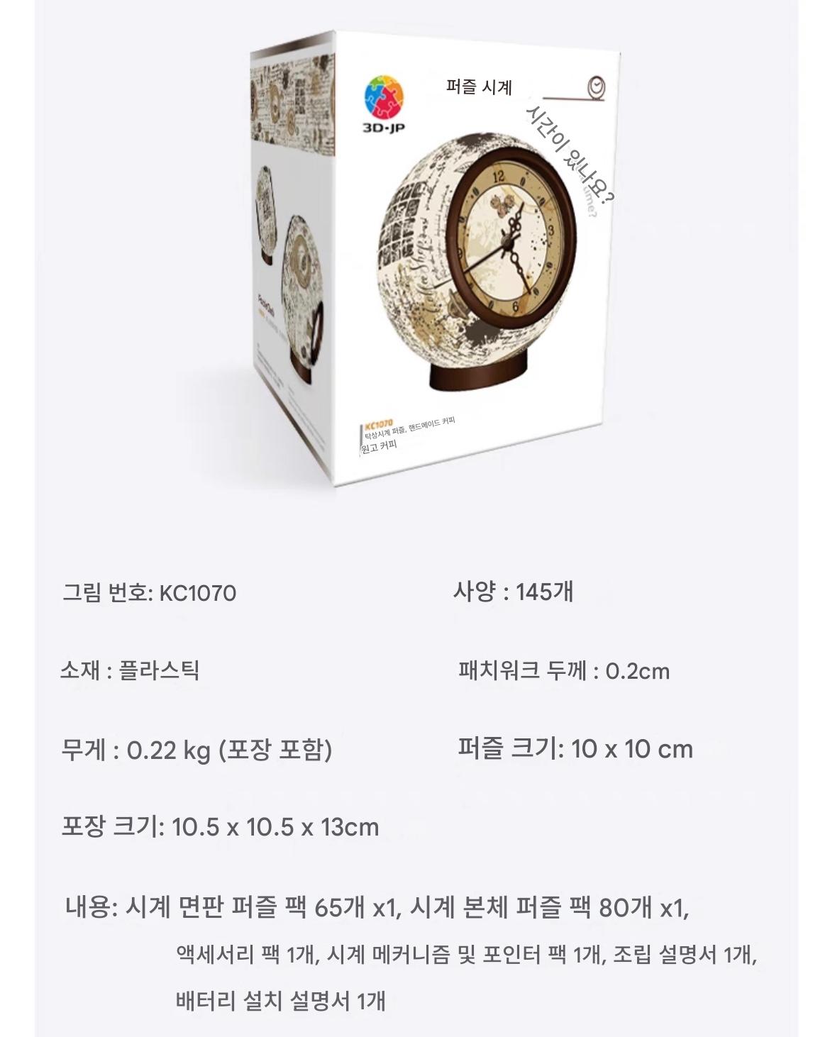3D-JP 데스크 시계 3djp 3차원 크리에이티브 퍼즐 145피스 데스크탑 시계 장식품 원고 커피 KC1070