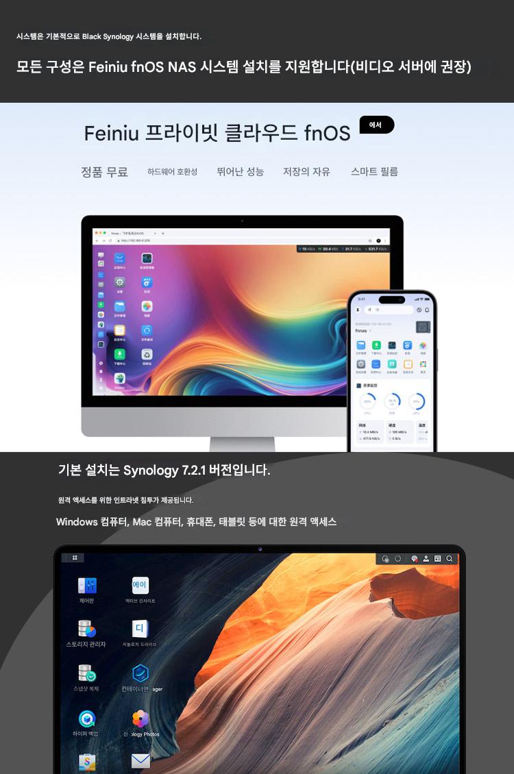 4슬롯 블랙 Synology i3/i5 Feiniu NAS 기가비트 2.5g 네트워크 포트 오디오 및 비디오 개인 클라우드 스토리지 저전력 소모 및 무소음