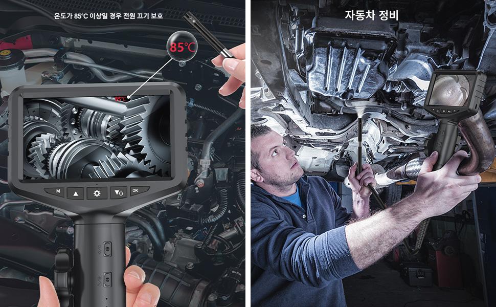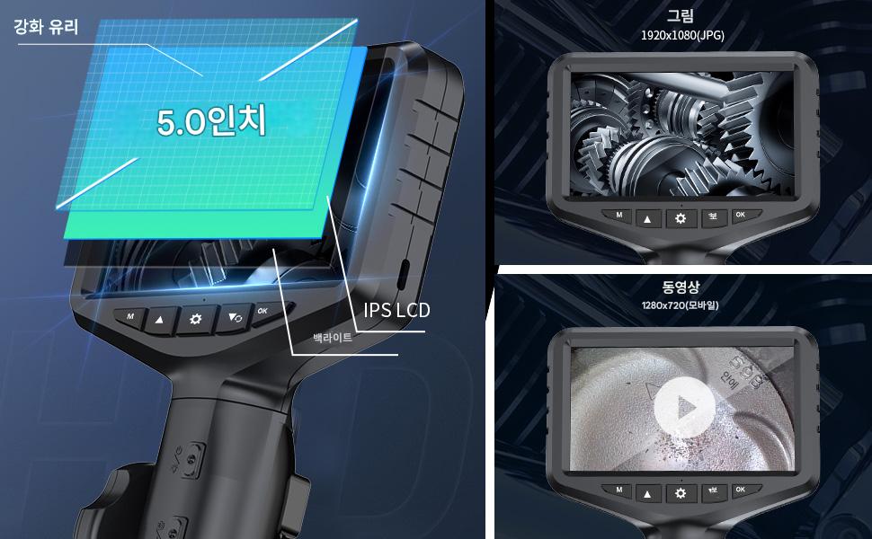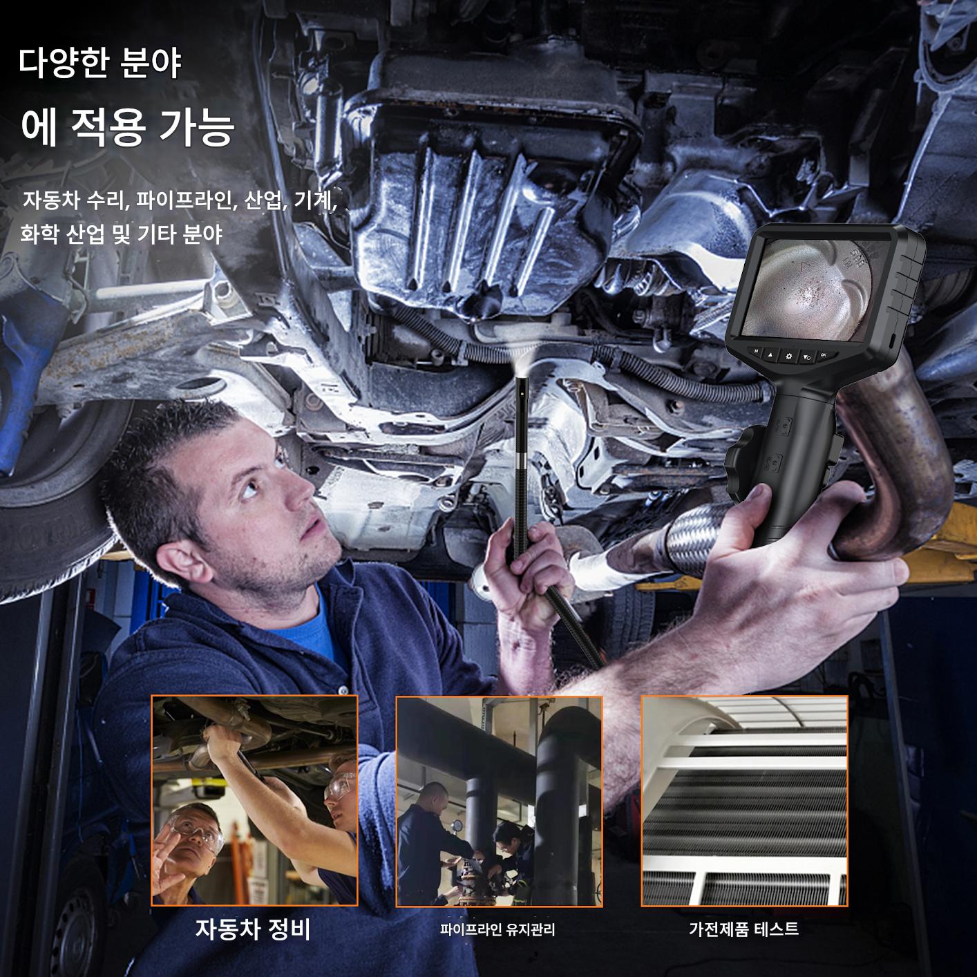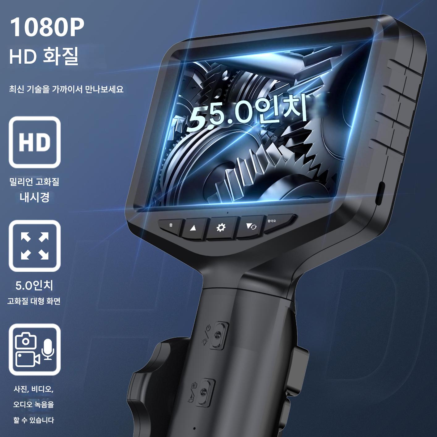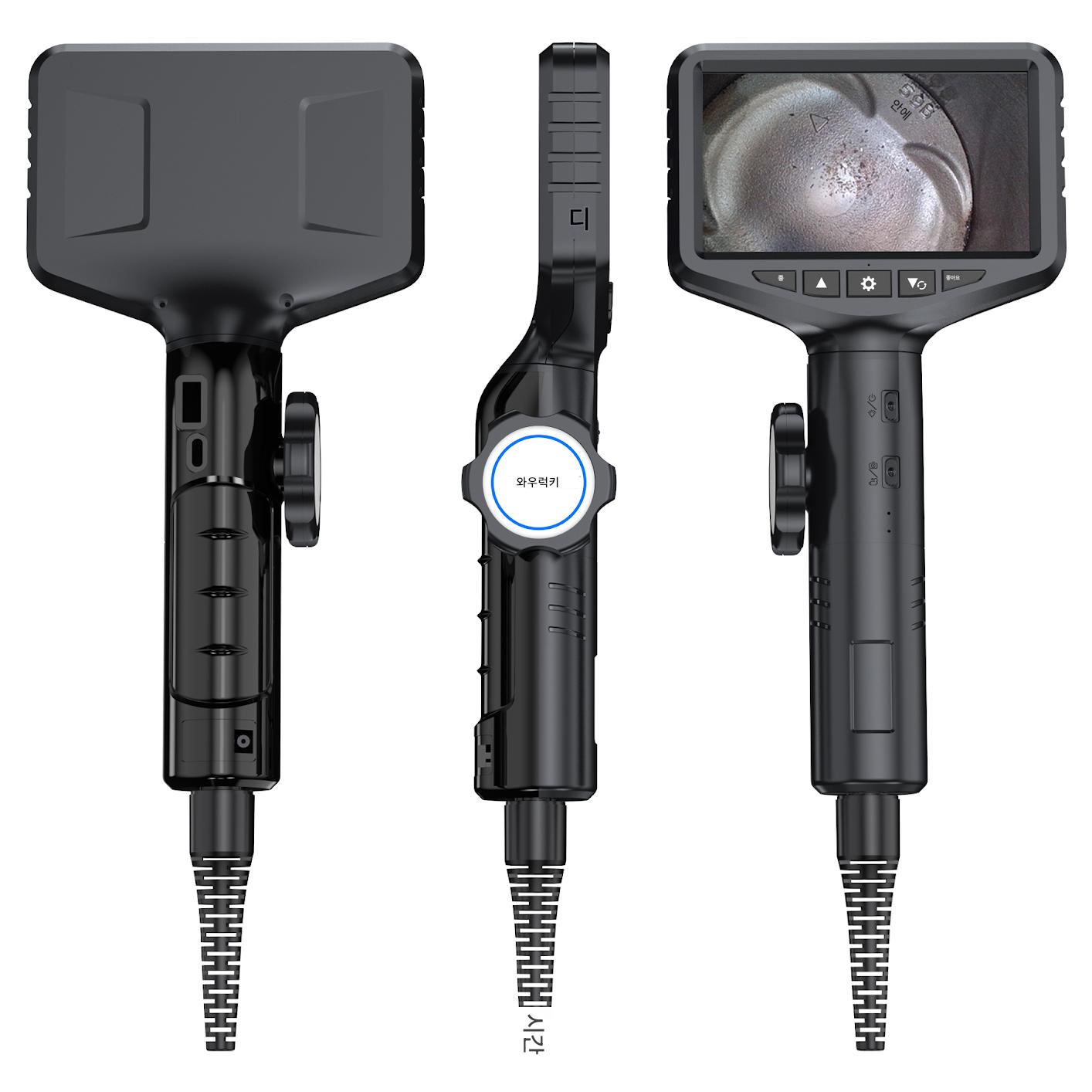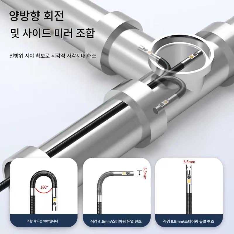 6.5mm 360도 조향 산업용 내시경 HD 카메라, 화면 5인치 듀얼 렌즈 시각 파이프라인