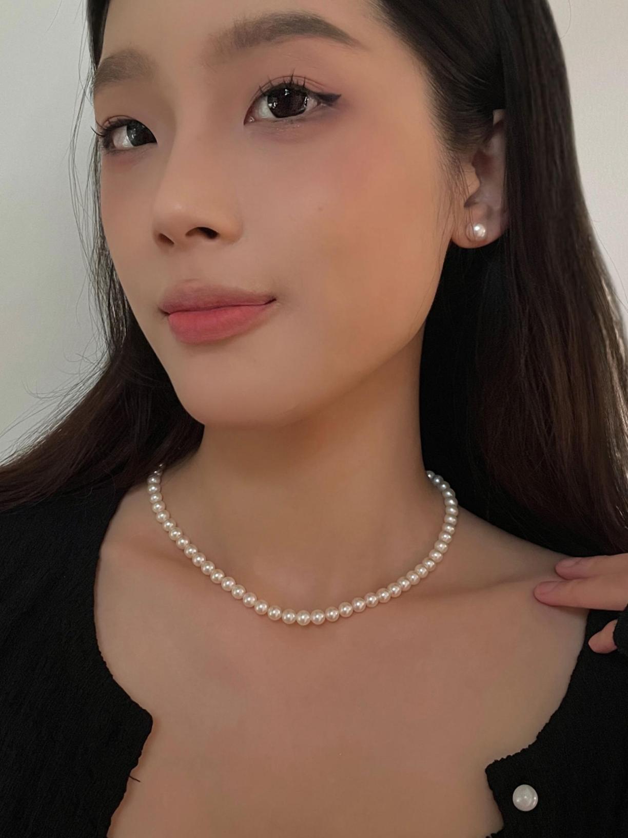 6-6.5mm 해수진주 목걸이 아코야 원형 강력가벼운 쇄골 작은 목걸이 자연스러움 여신급