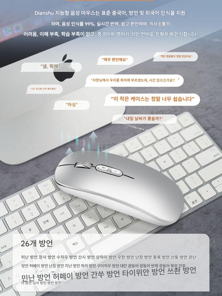 AI 지능형 음성 마우스 말하기 타이핑 번역 외국어 무음 블루투스 무선 마우스 충전식 컴퓨터 범용