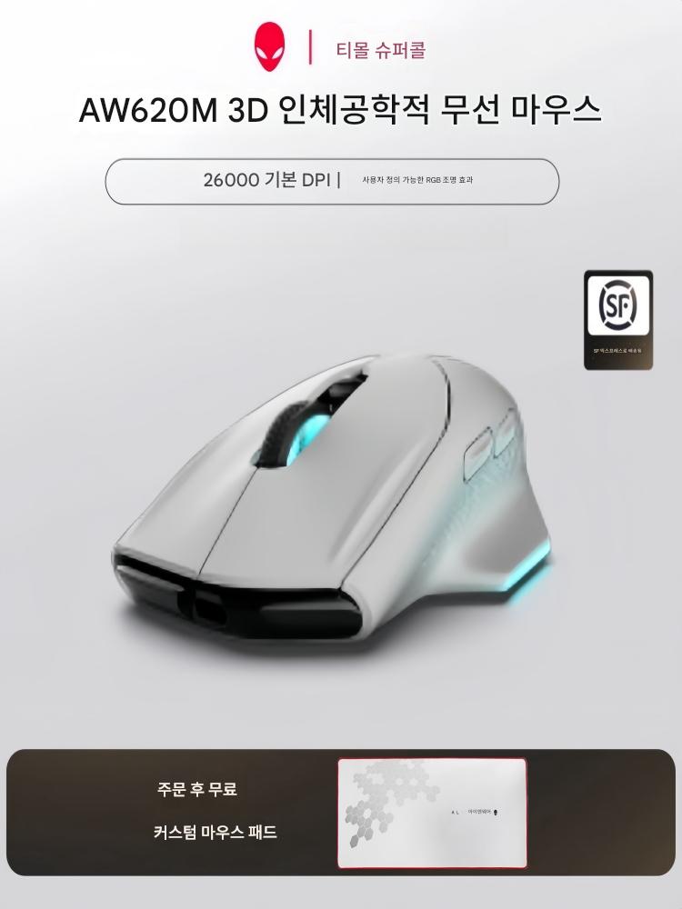 ALIENWARE alien AW620M 무선 유선 듀얼모드 마우스 게임용 컴퓨터 RGB 기계식 선물