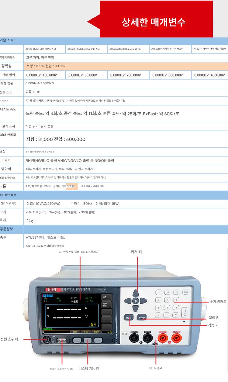 Amber AT527A/B/H 배터리 내부 저항 테스터 리튬 배터리 UPS 내부 저항 온라인 테스트 AC 내부 저항