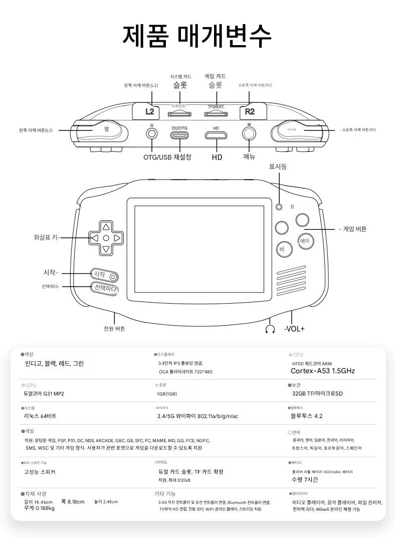 Ambernick RG34XX 소형 수평 버전 클래식 향수 게임 콘솔 휴대용 미니 연결 TV 스트리밍 HD GBA