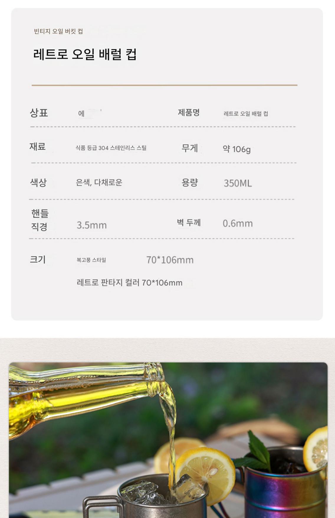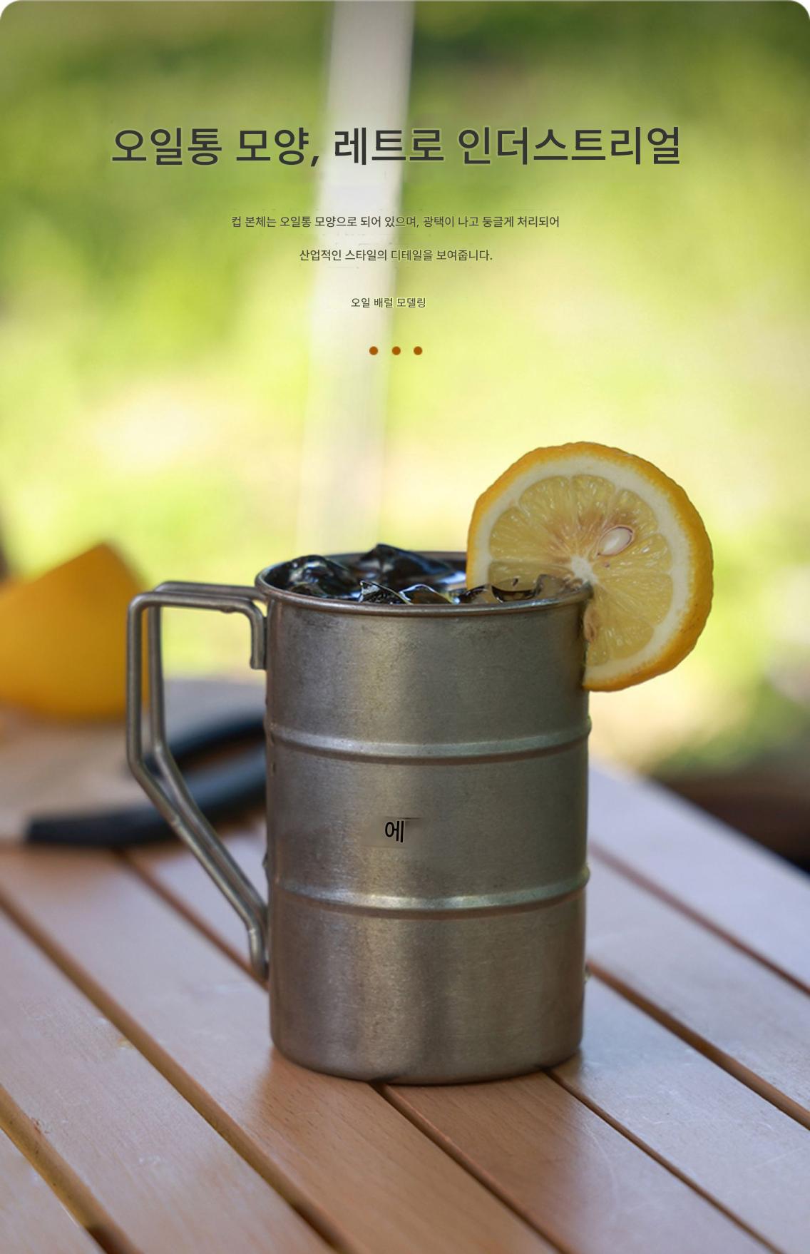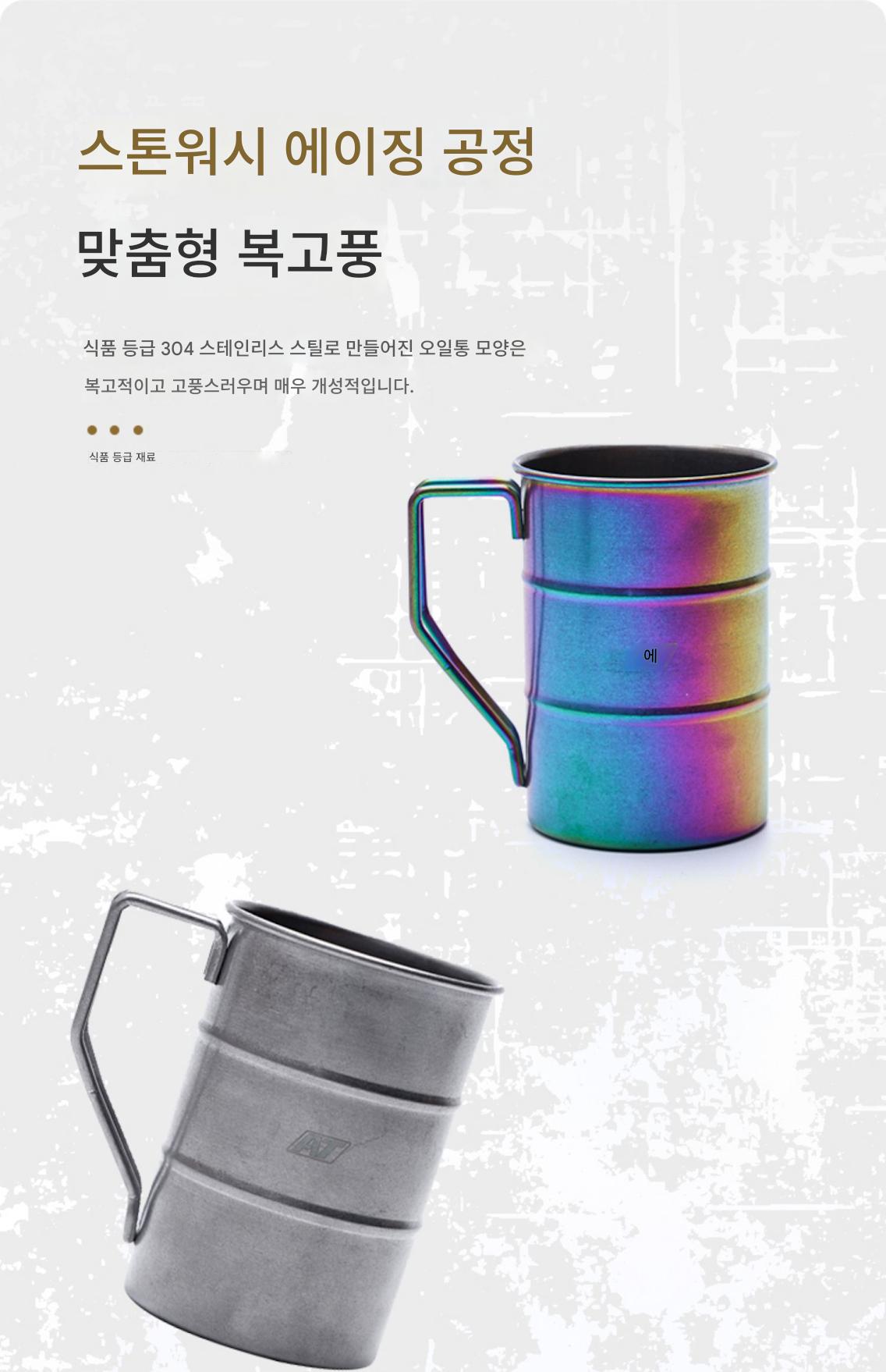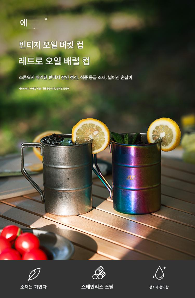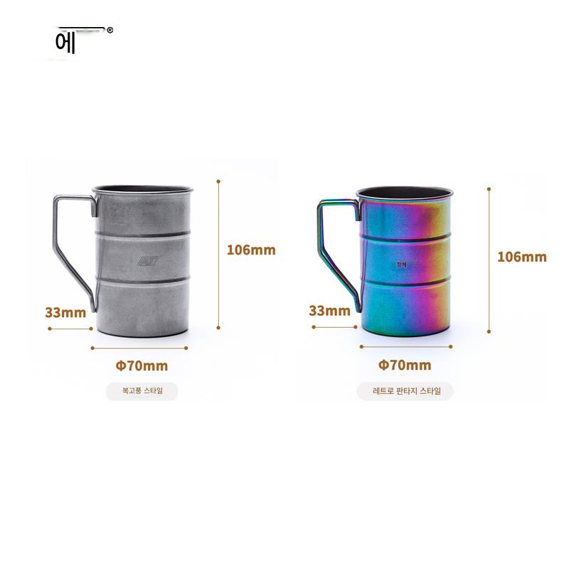 AT 야외 레트로 오일 통 컵 크리에이티브 컬러풀 머그 캠핑 티컵 대용량 캠핑 여행 식수