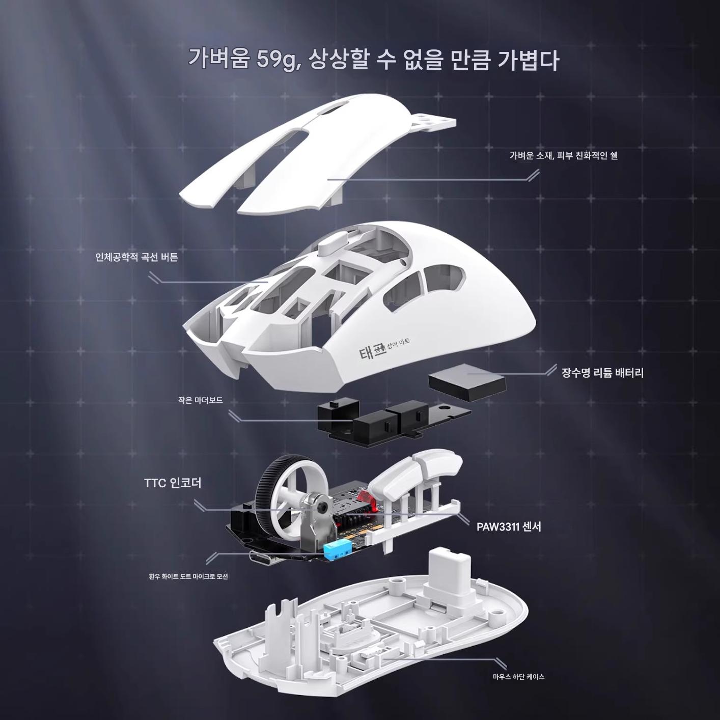 Attack Shark R1 마우스 경량 59g PAW3311 오피스 게임 마우스 무선 블루투스