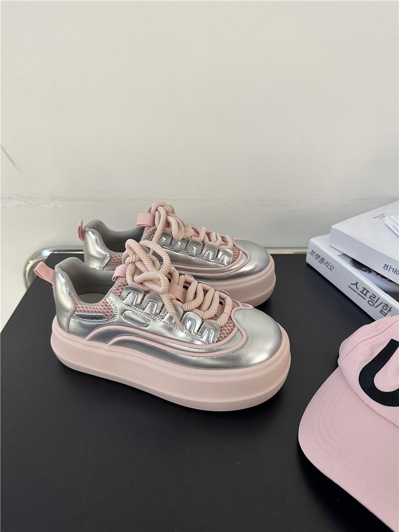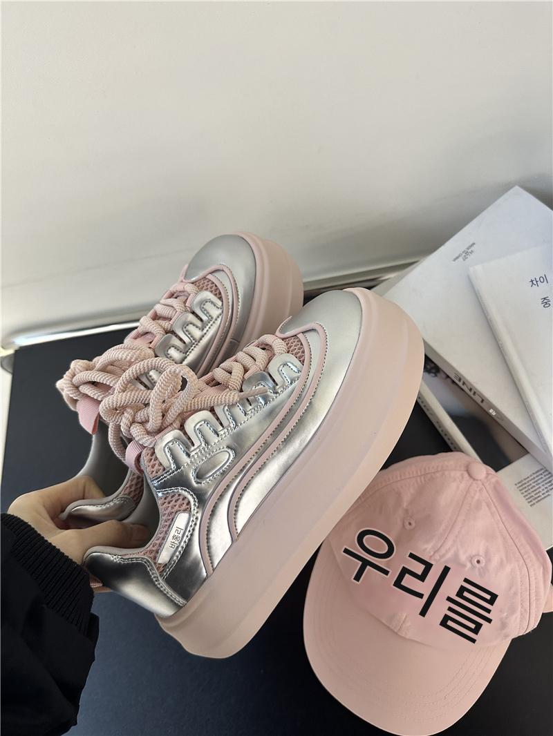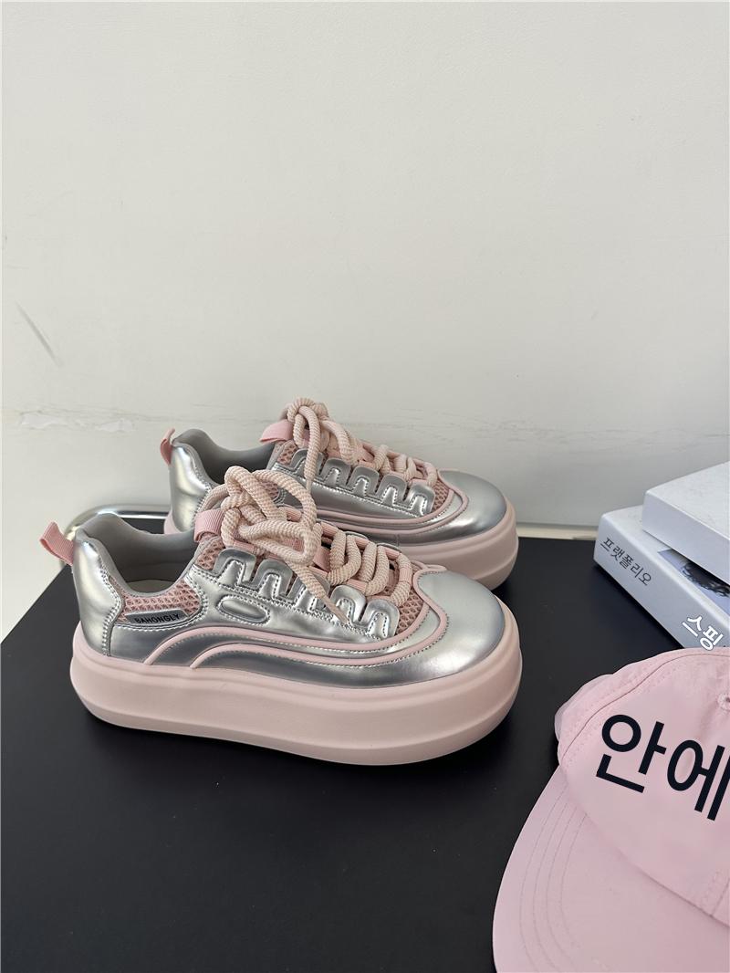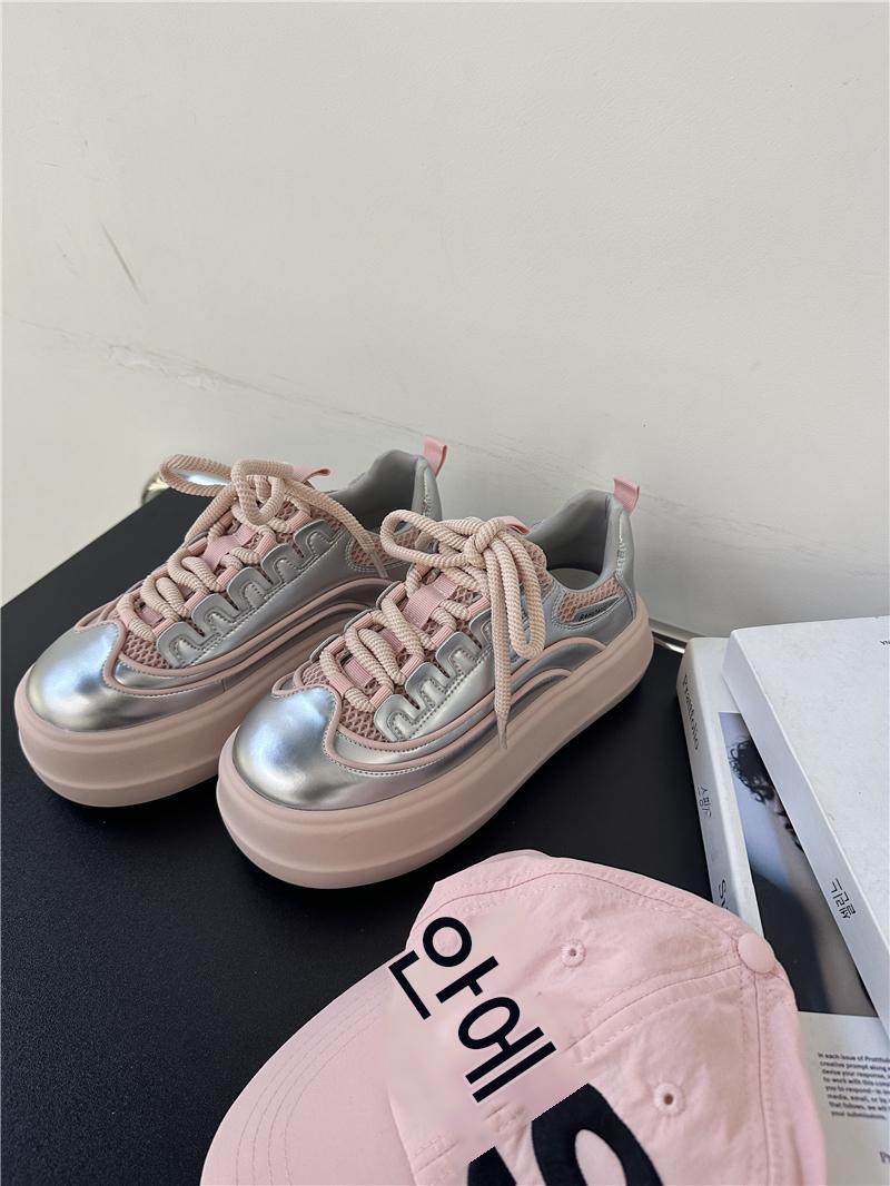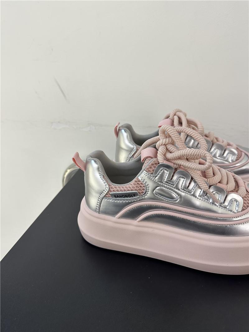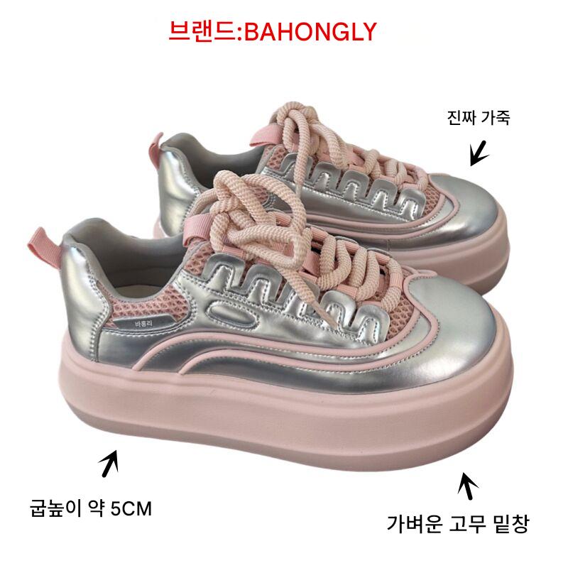 BAHONGLY 여성용 핑크 빵화 2025년 봄 통기성 두꺼운 바닥 가볍고 높이감 있는 못생긴 귀여운 캐주얼 스니커즈