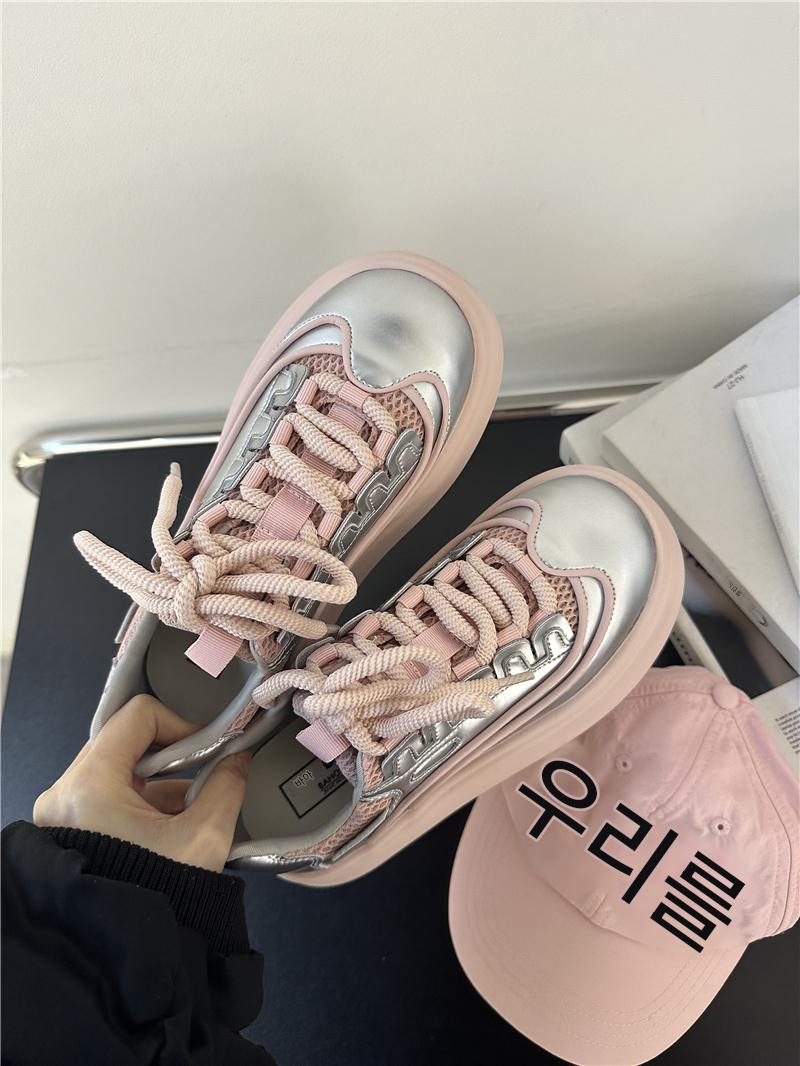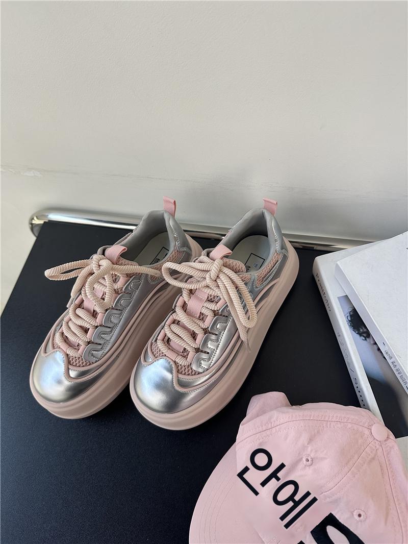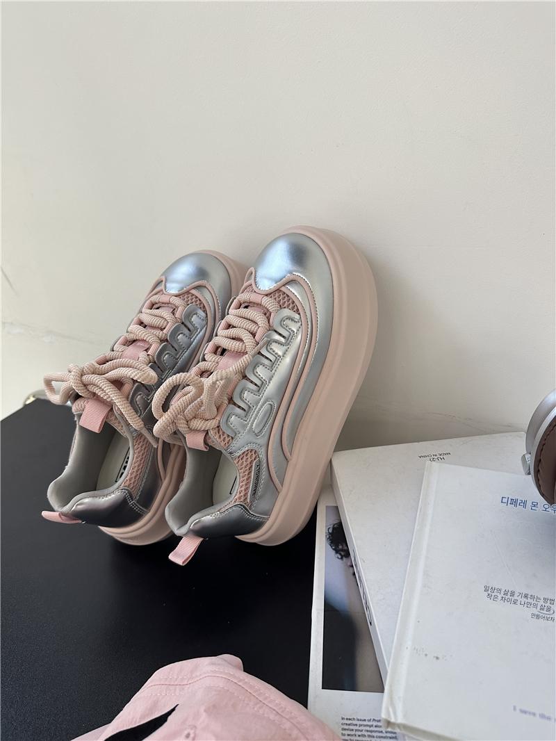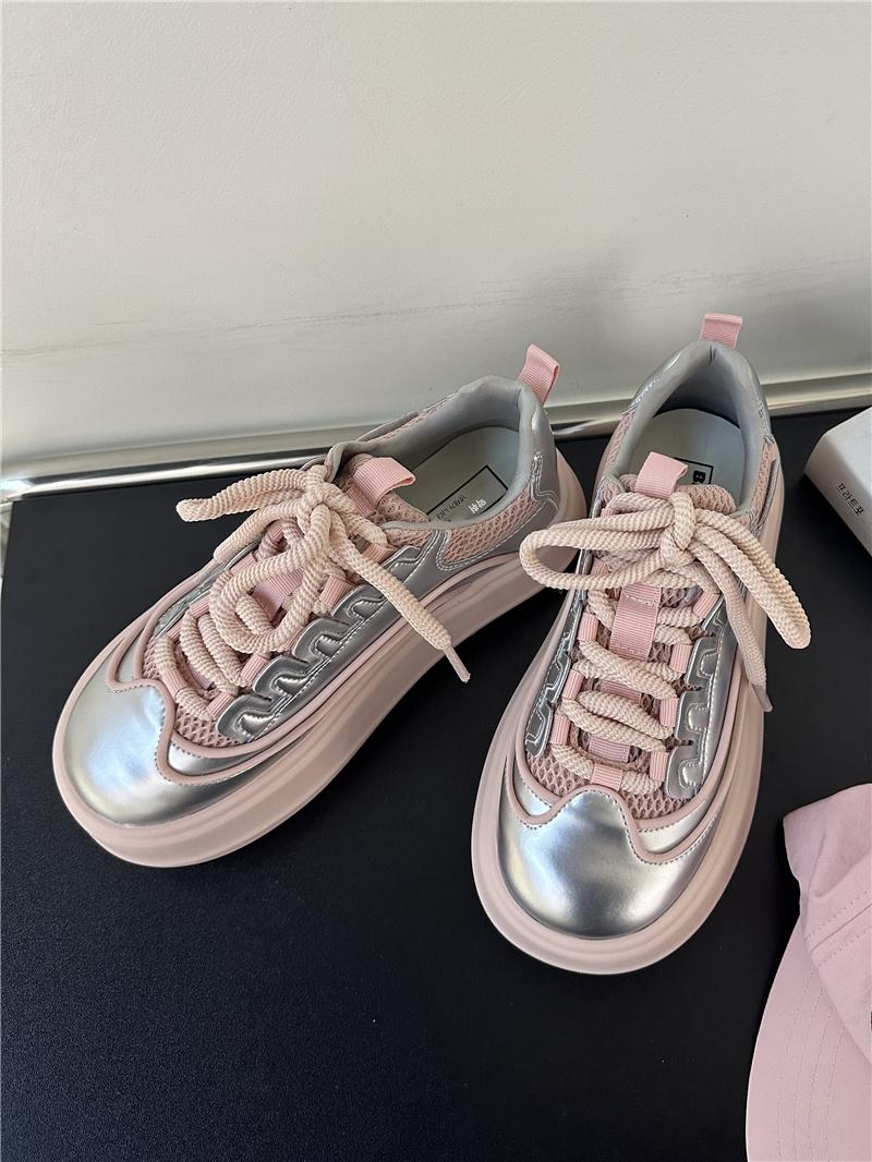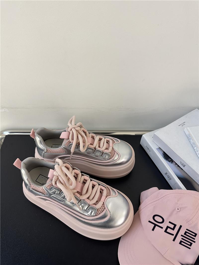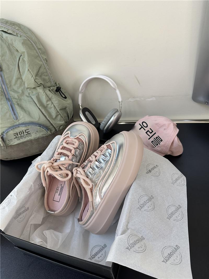 BAHONGLY 여성용 핑크 빵화 2025년 봄 통기성 두꺼운 바닥 가볍고 높이감 있는 못생긴 귀여운 캐주얼 스니커즈